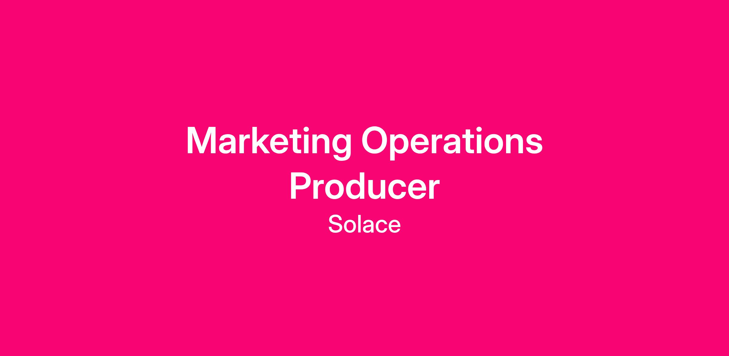 Solace is looking for a Marketing Operations Producer to own the coordination and execution of our creative marketing work, ensuring ideas move smoothly from prioritization and briefs through production and final delivery. This role sits on the Integrated Marketing team, ensuring strong ideas turn into high-quality work that ships on time, on budget, and are catalogued and labeled correctly with usage and licensing details.