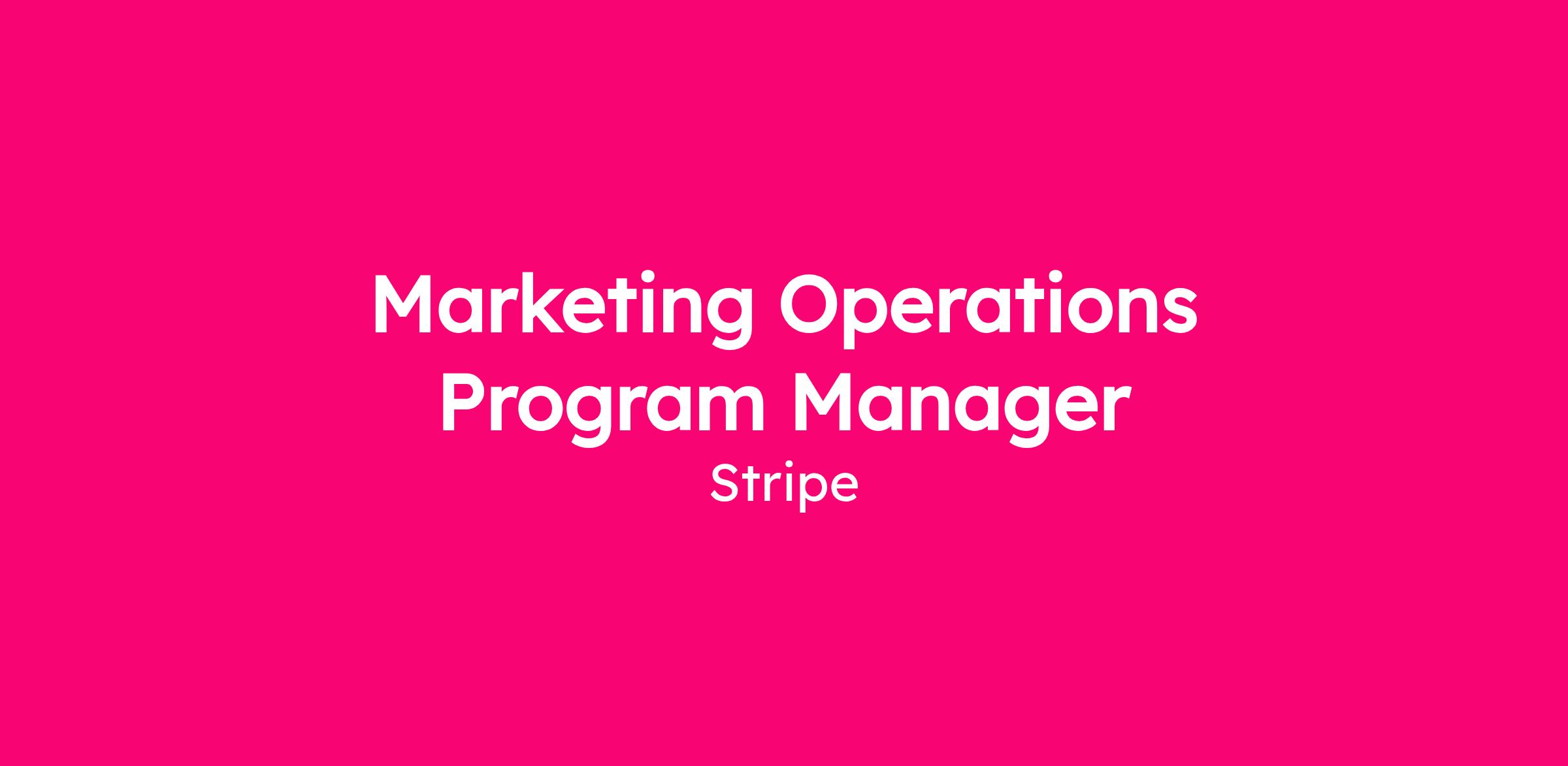 The Marketing Operations team is responsible for the systems, processes, and data infrastructure that power Stripe's global marketing engine. We partner closely with Growth, Demand Generation, Regional Marketing, Lifecycle, Sales Development, and Marketing Technology teams to ensure campaigns are executed with precision, prospect data is accurate and actionable, and our marketing technology stack operates at scale.
