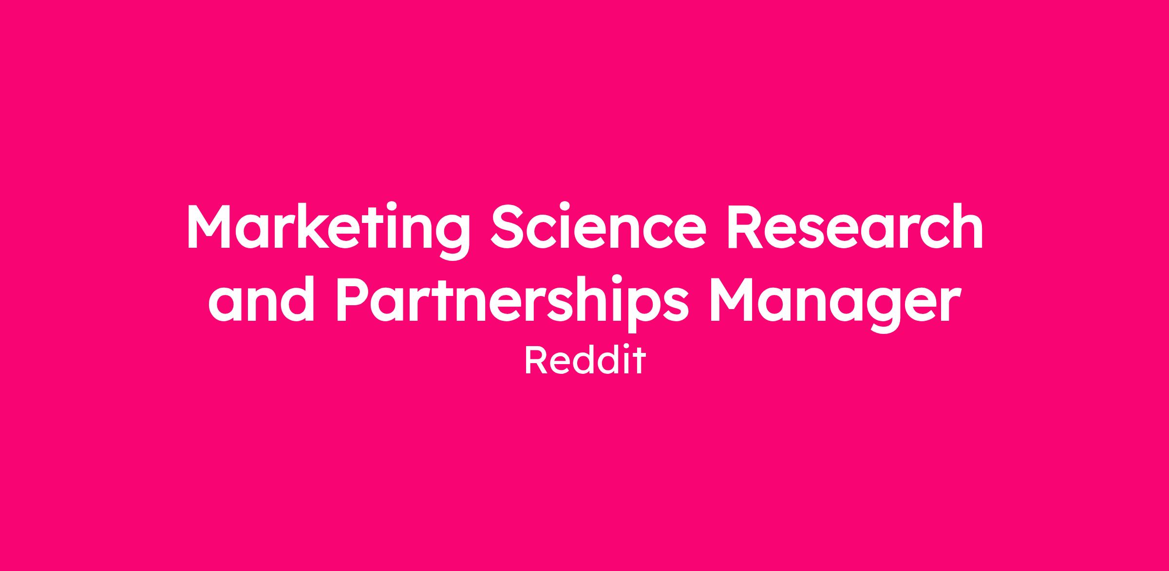 We are looking for a Marketing Science Research and Partnerships Manager to lead a global, multi-disciplinary team. This newly created role will oversee both our Measurement Research group and our Third-Party (3P) Measurement Partnerships and Insights group. You will be an integral part of the Marketing Sciences team, driving our value proposition to agencies and brands by demonstrating the power and performance of Reddit as a media platform. In short, we’re looking for a visionary leader who can balance deep technical research with strategic partnership management.