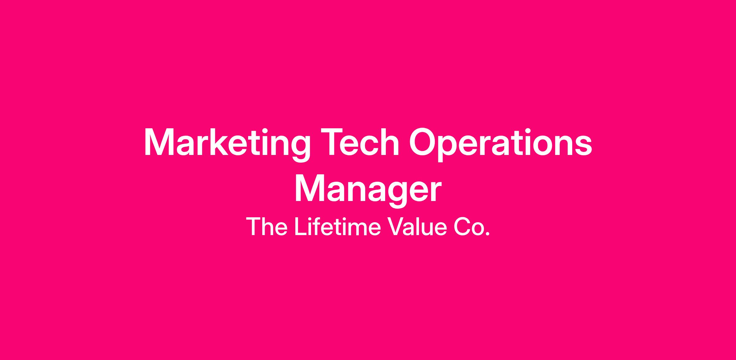 The Lifetime Value Co. is looking for a Marketing Tech Operations Manager to drive the backbone of our global marketing efforts. This role will manage LTV’s marketing systems, ensure data and tools are optimized, and support efficient execution across teams.