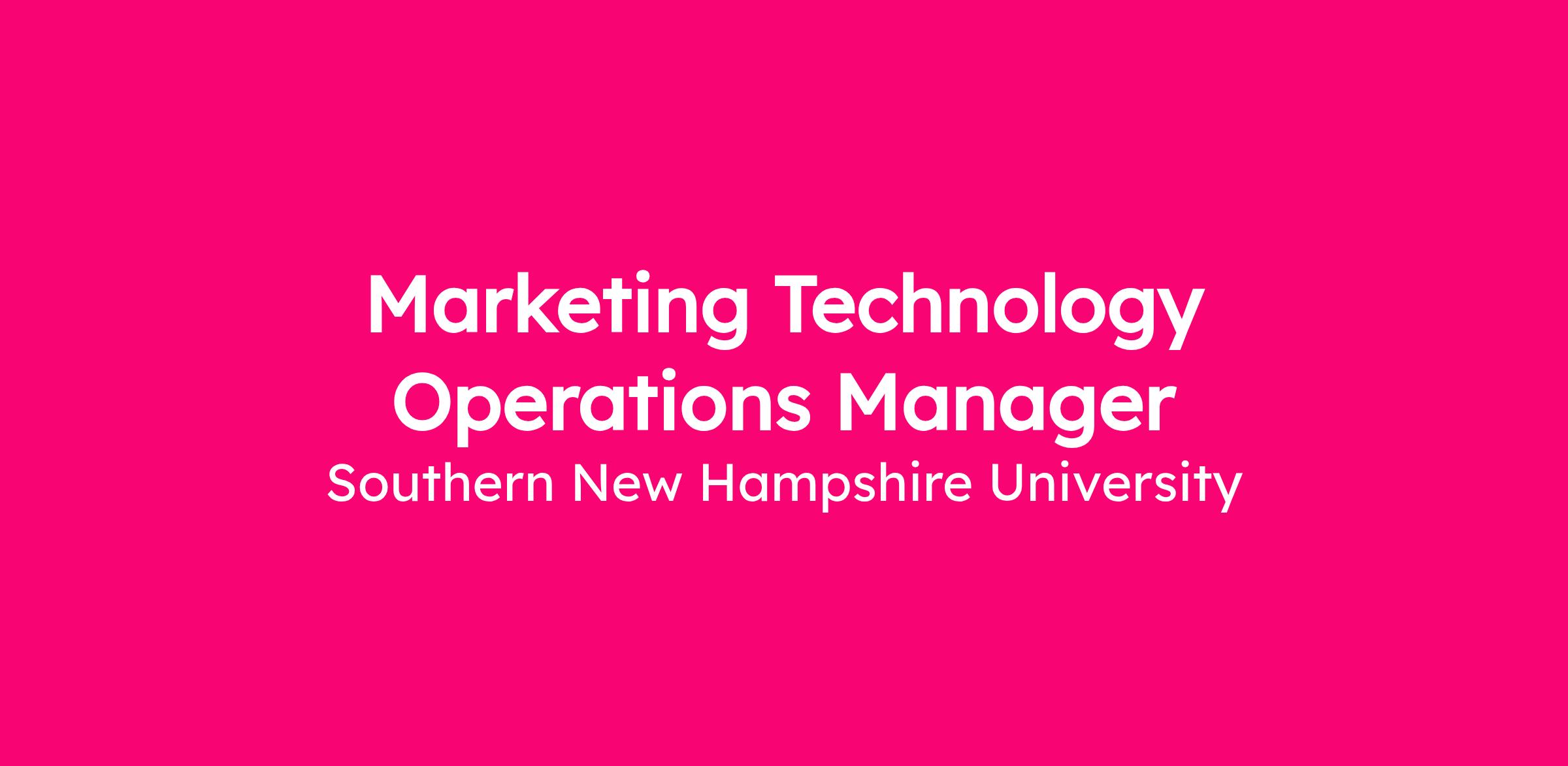 The Marketing Technology Operations Manager will support SNHU's mission and vision for growth by improving marketing technology solutions to enhance student engagement and communications. You will support the Marketing and Technology team's success by ensuring technical readiness, driving process improvements, coordinating quality assurance efforts, and identifying opportunities to enhance system performance and team efficiency. You will report to the Director of Marketing Automation. LI-Remote