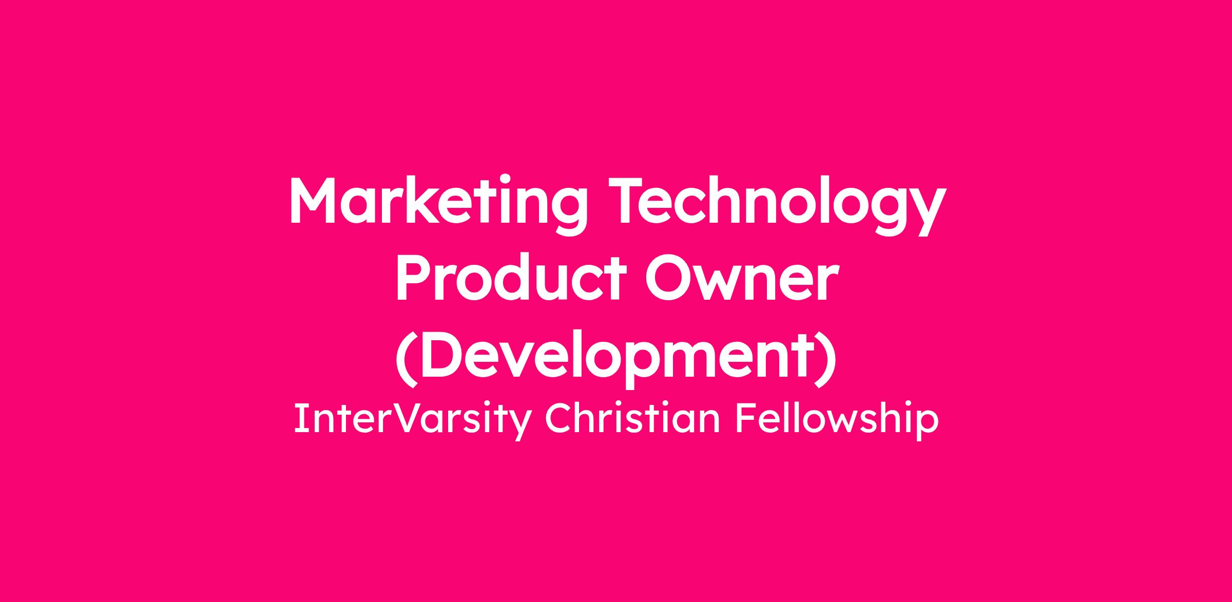 Full timeTo advance the purpose of InterVarsity, this position will steward our Marketing Technology and its related processes by communicating with stakeholders and end users, managing vendor relationships, and prioritizing changes to achieve greater value out of the Marketing Technology for the organization.MAJOR RESPONSIBILITIES