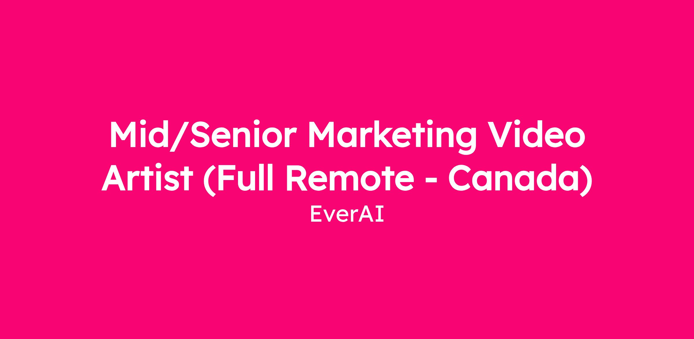 Mid/Senior Marketing Video Artist (Full Remote - Canada)