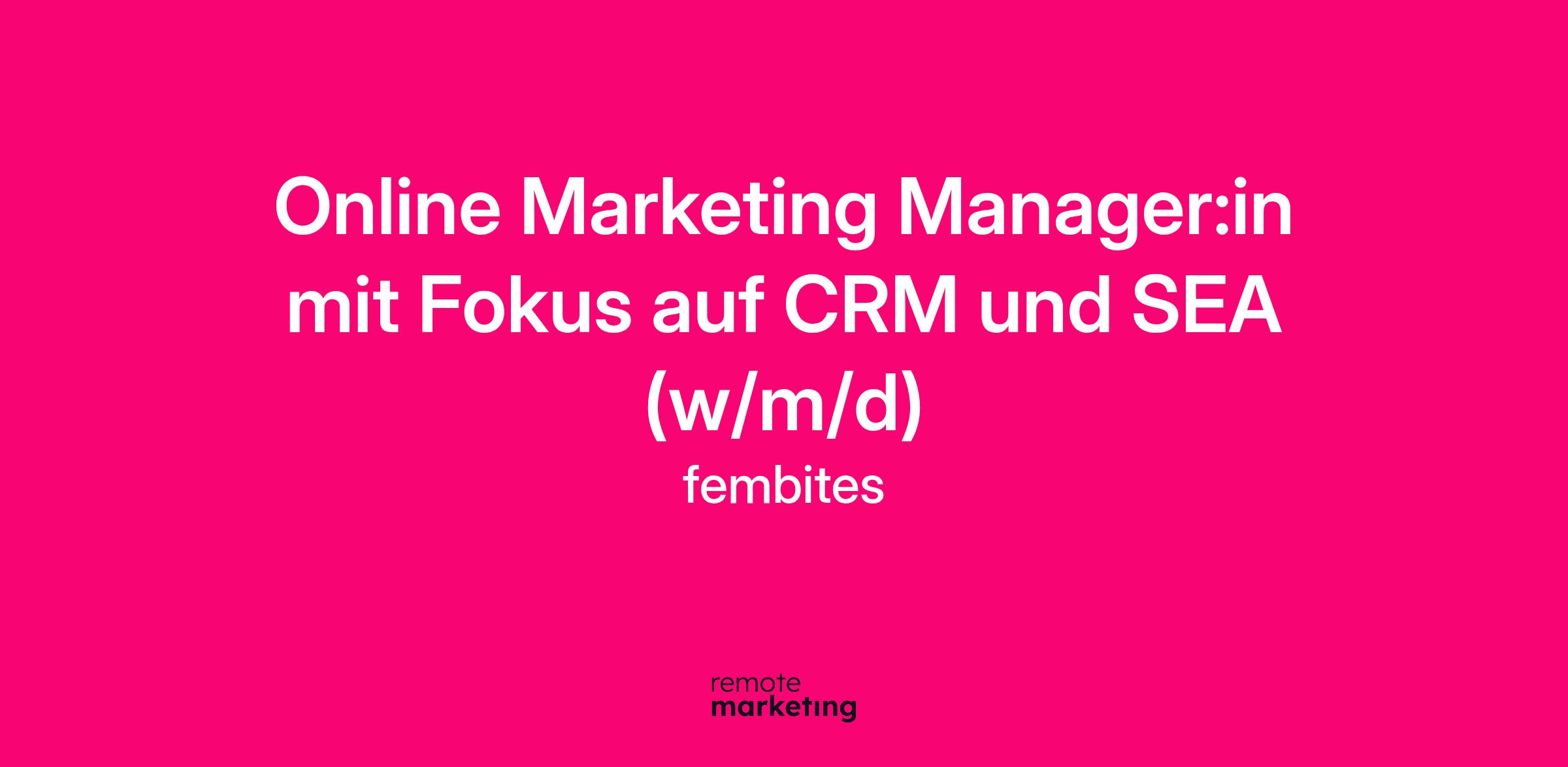 Online Marketing Manager:in (w/m/d) – mit Fokus auf CRM und SEA