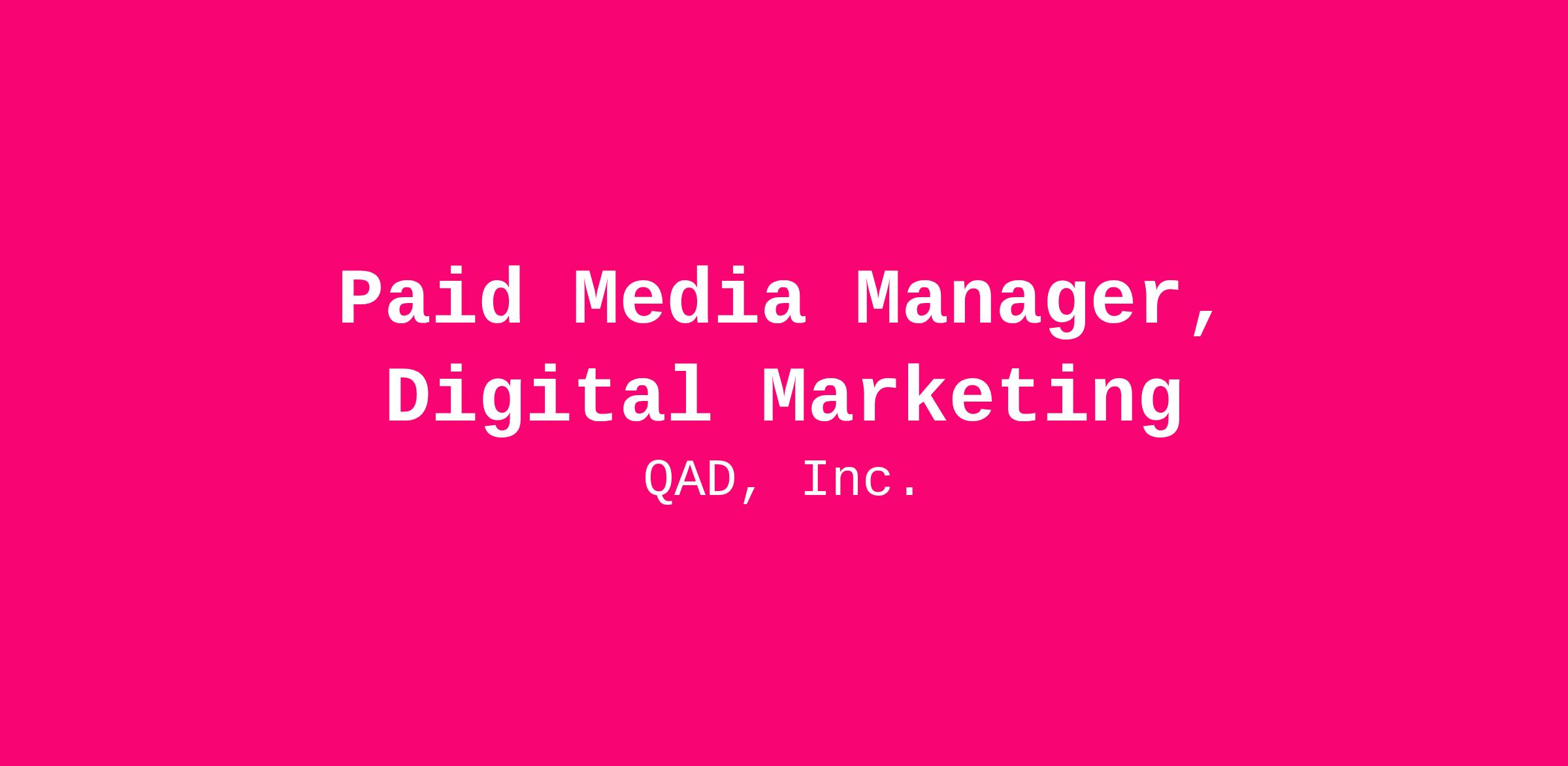 Reporting to the SVP of Marketing, this role will manage day-to-day digital execution across SEM, paid social, programmatic, and ABM programs, working closely with Product Marketing, Field Marketing, and Sales to support demand generation goals.