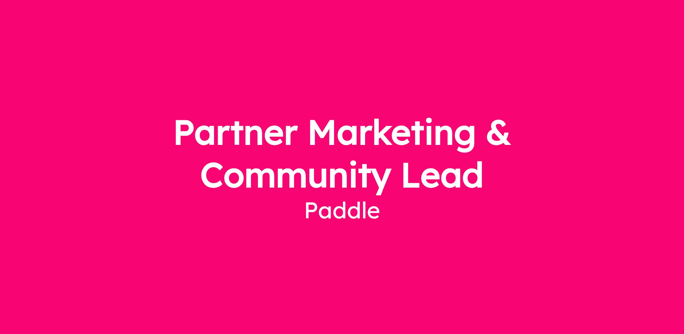 We are looking for a Partner Marketing & Community Lead to own and scale Paddle’s partner marketing motion.