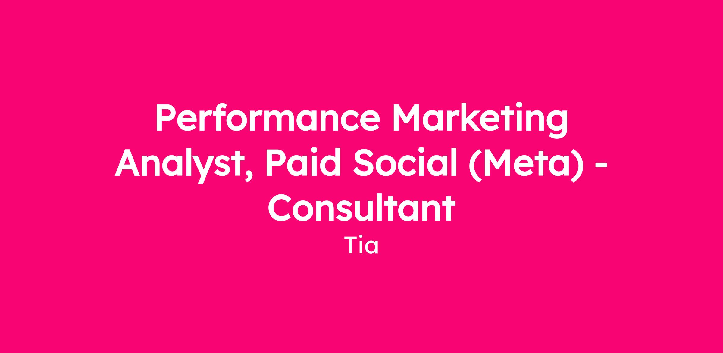 Job Title: Performance Marketing Analyst, Paid Social (Meta)-Consultant