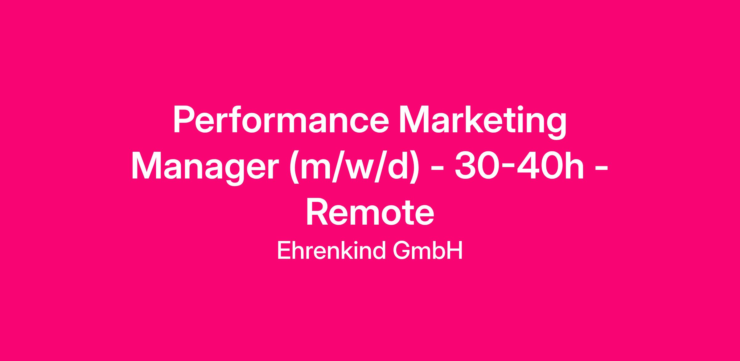 Unsere groĂe Vision ist es, dass die Produkte von Ehrenkind in allen Kinderzimmern dieser Welt zu finden sind Dazu brauchen wir einen Performance Marketing Manager, der unsere Online-Kampagnen auf ein neues Level hebt. Du schaltest Werbung auf den wichtigsten KanĂ€len (Schwerpunkt Google) und leistest somit einen entscheidenden Beitrag, um Ehrenkind bekannter zu machen und Besucher zu Kunden werden zu lassen! Lass uns gemeinsam unsere Vision zur RealitĂ€t werden