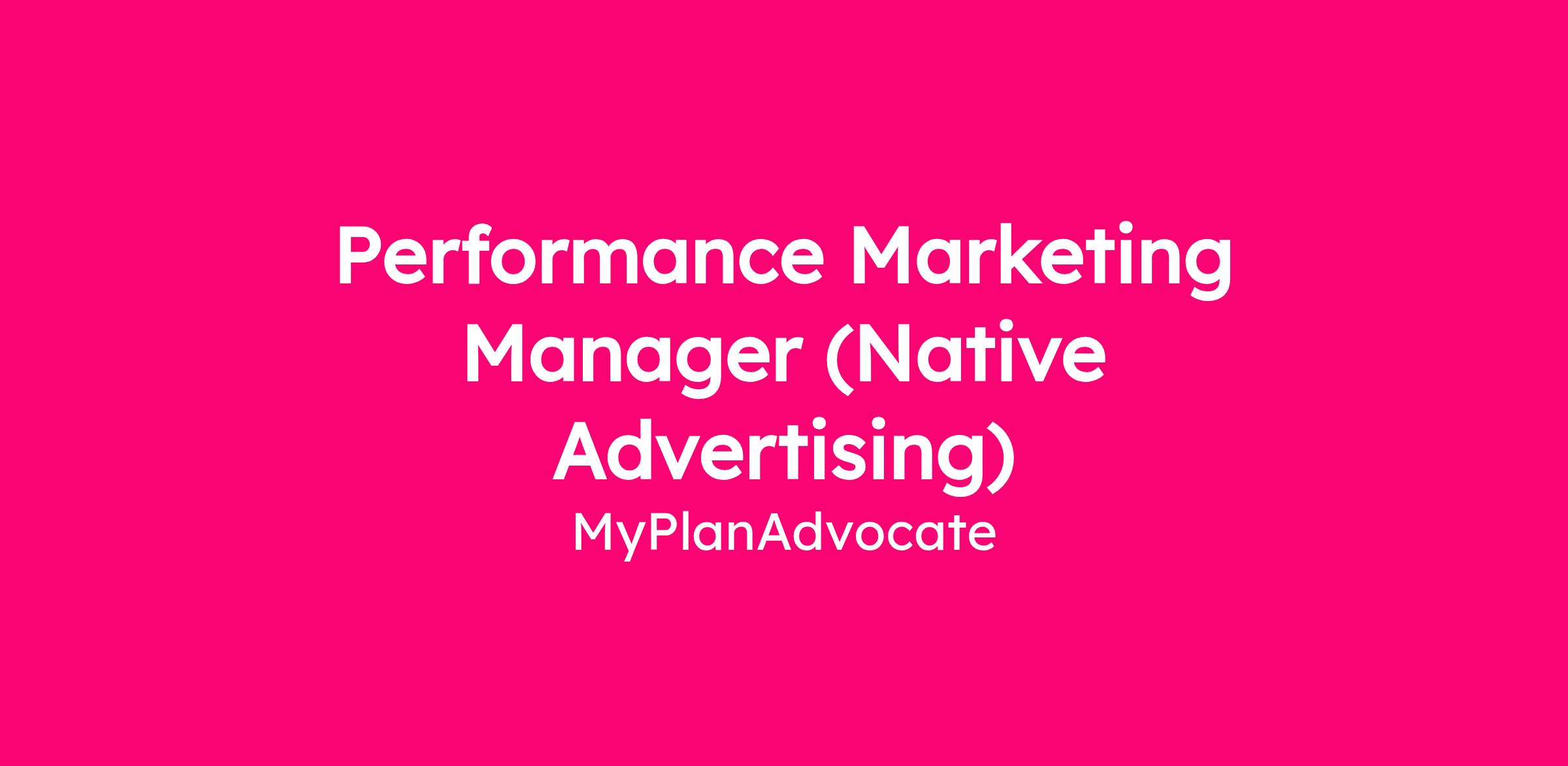 Position: Performance Marketing Manager, Native Advertising (AI-Driven Growth)