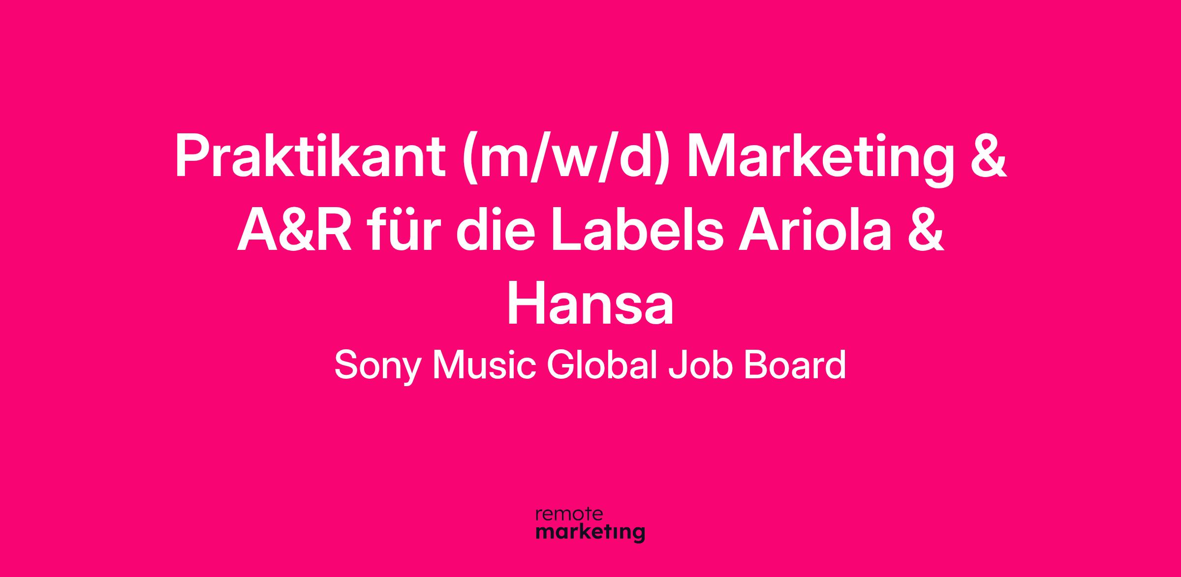 Praktikant (m/w/d) Marketing & A&R für die Labels Ariola & Hansa