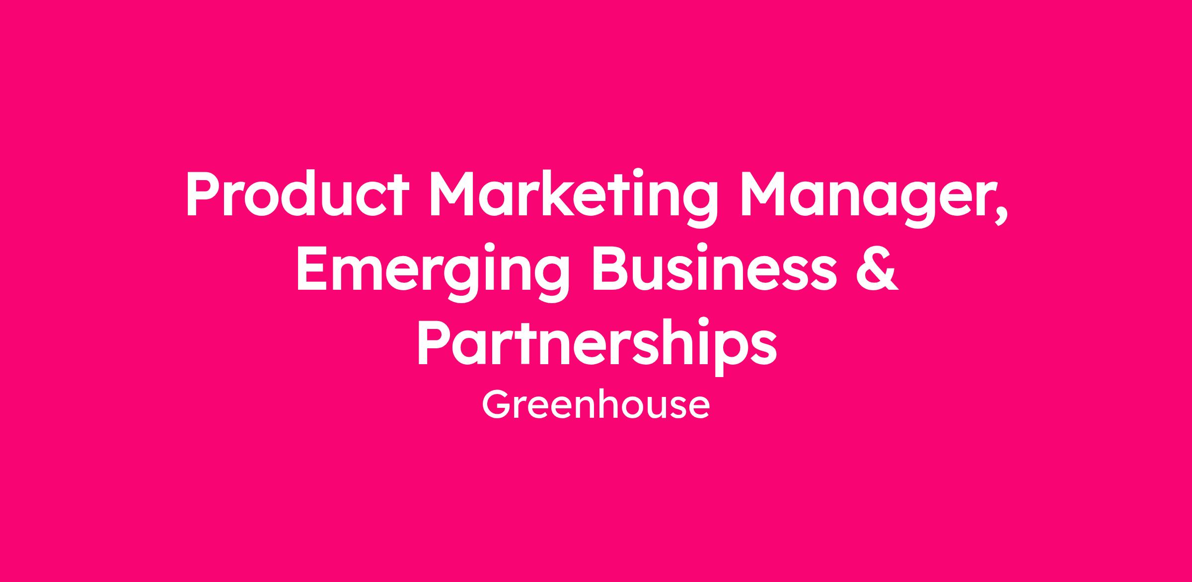 Greenhouse is looking for a Product Marketing Manager, Emerging Business & Partnerships to join our team!
