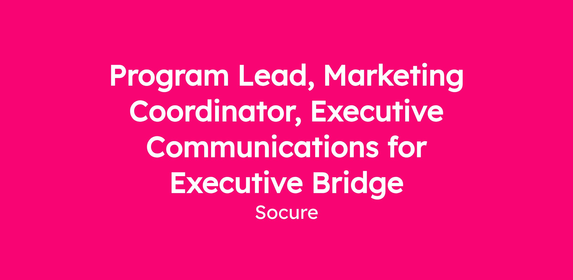 The Program Lead, Executive Bridge is responsible for owning and elevating Socure’s Executive Bridge program. This is a high-visibility, high-trust role that works closely with executive stakeholders and cross-functional partners to ensure the program is strategically aligned, operationally strong, and executed with precision.
