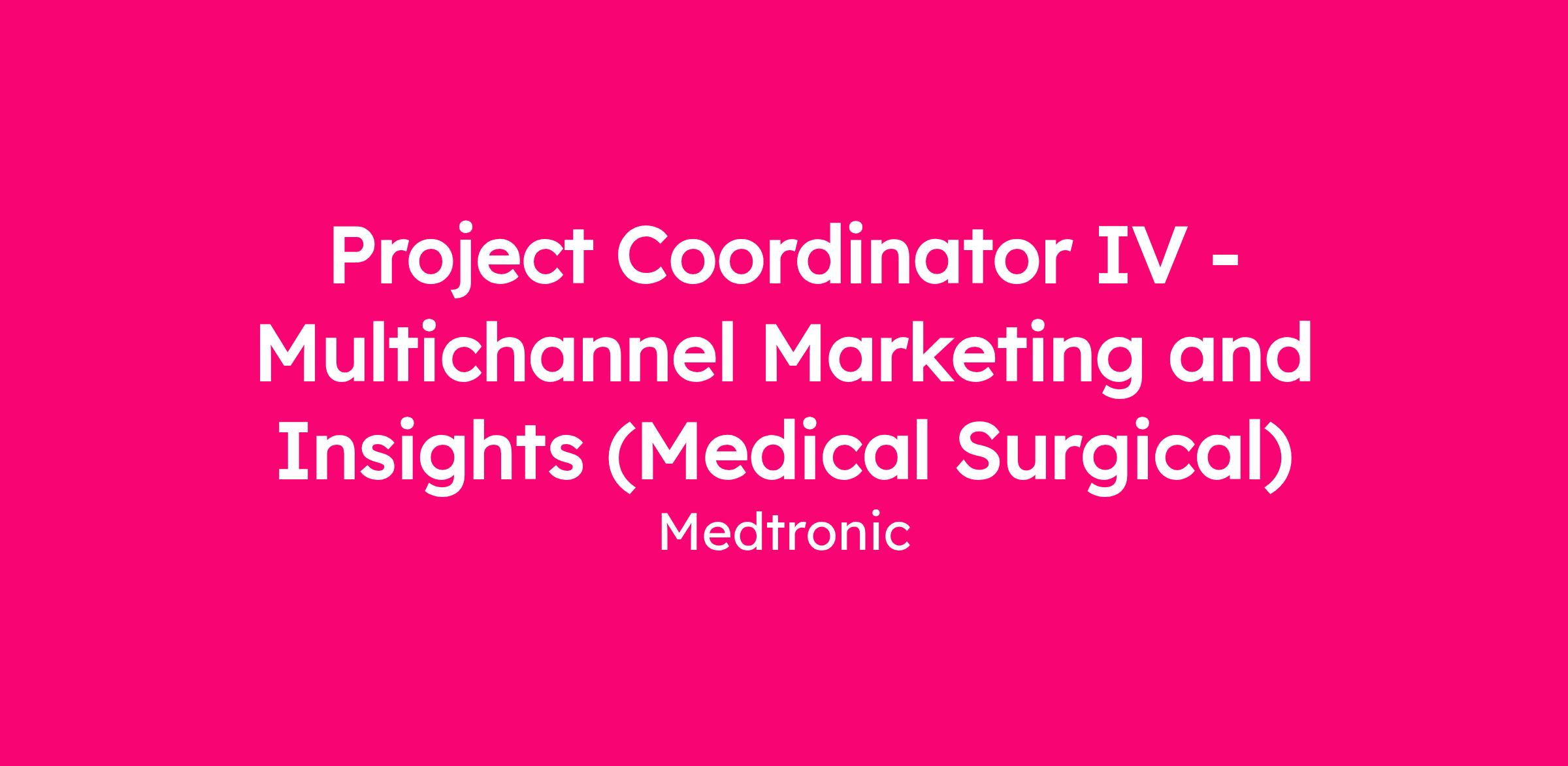 We are hiring a Project Coordinator IV to join the Core Surgical Innovations (CSI), MMI Content Compliance team. This role supports Medical Surgical Marketing programs by coordinating and managing advertising and promotional (Ad/Promo) content submissions through Medtronic’s compliance system, Veeva/PromoMats. Â