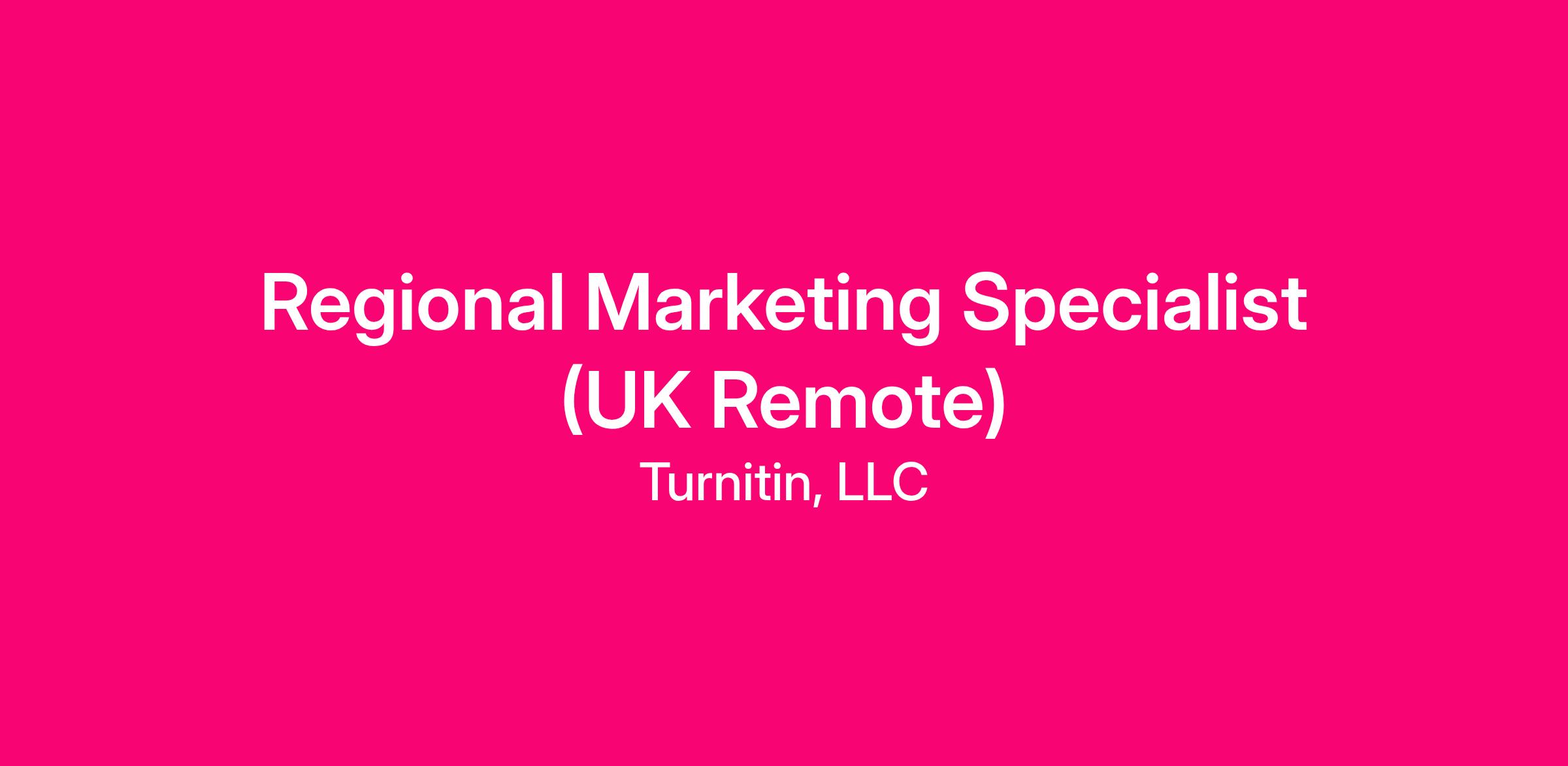Regional Marketing Specialist (UK Remote)