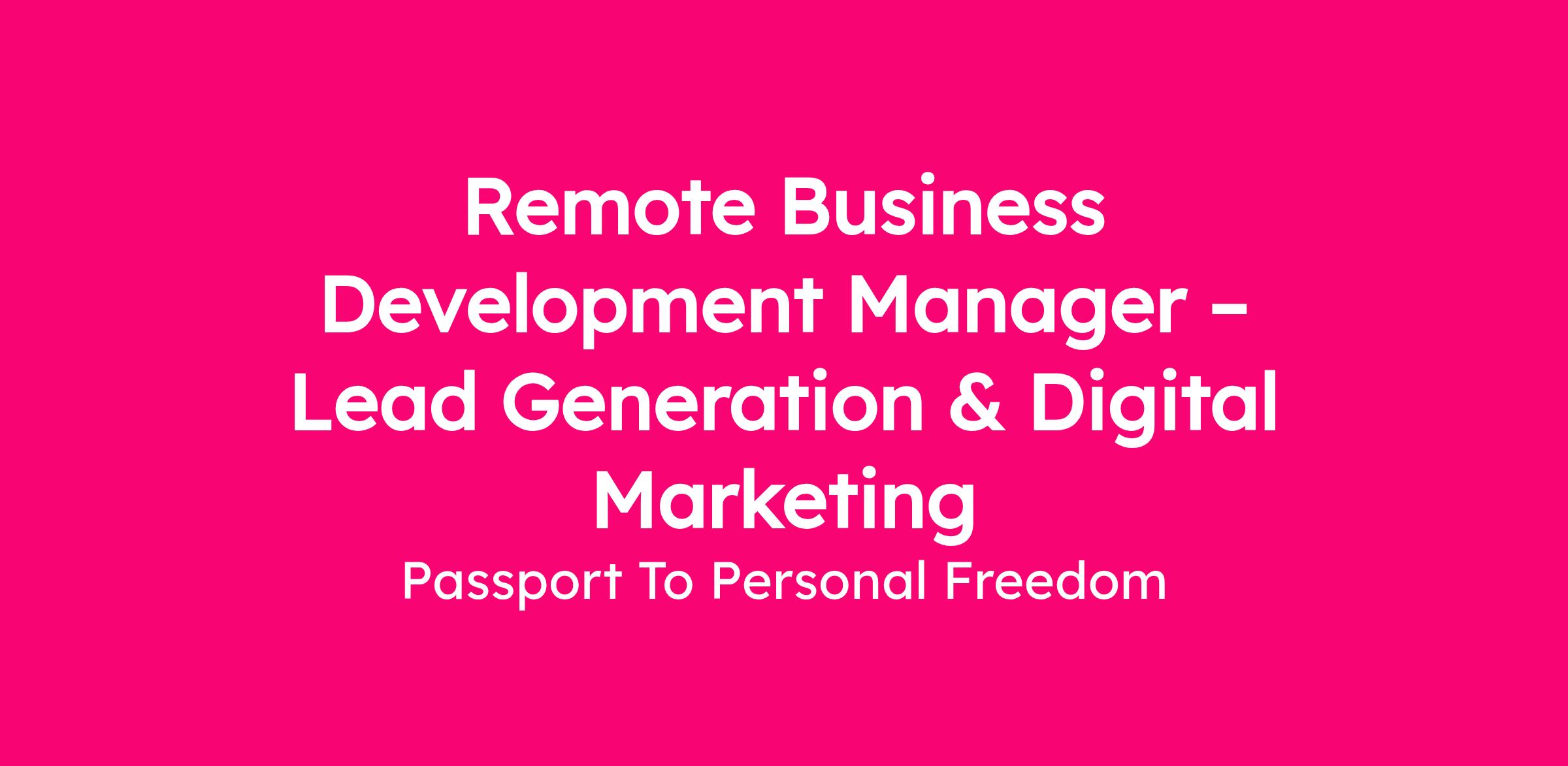 We are expanding and seeking a results-driven Business Development Manager / Lead Generation Specialist who is open to an exciting performance-based, remote opportunity.