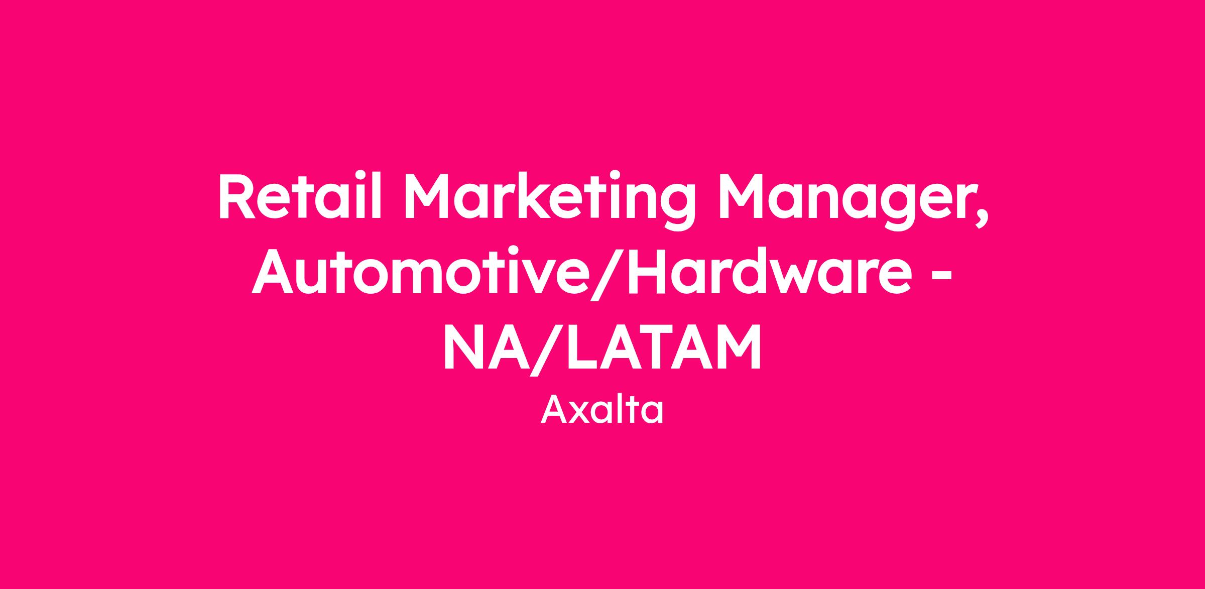 JOB TITLE: Retail Marketing Manager, Automotive/Hardware - NA/LATAM