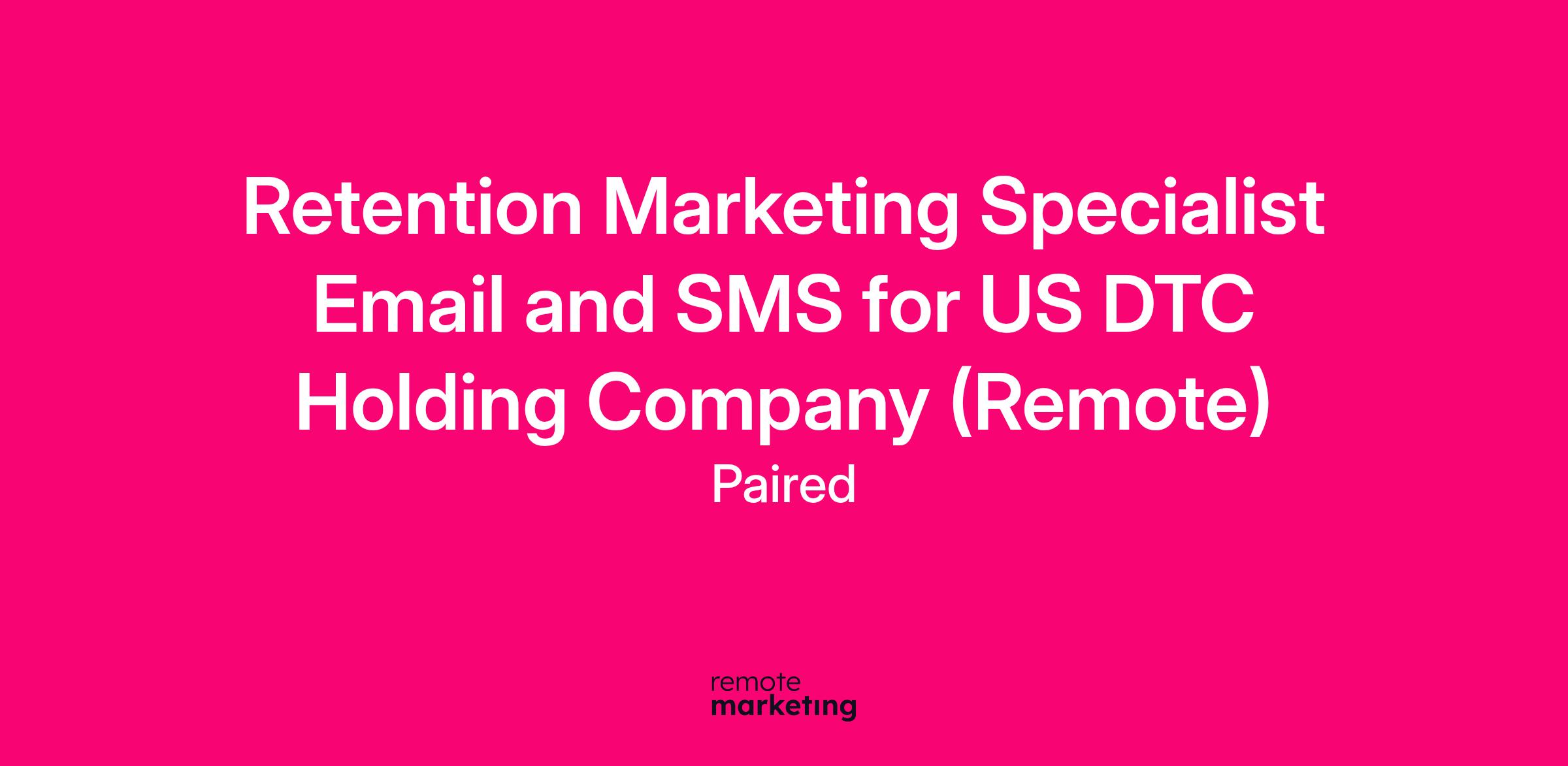 Retention Marketing Specialist Email and SMS for US DTC Holding Company (Remote)