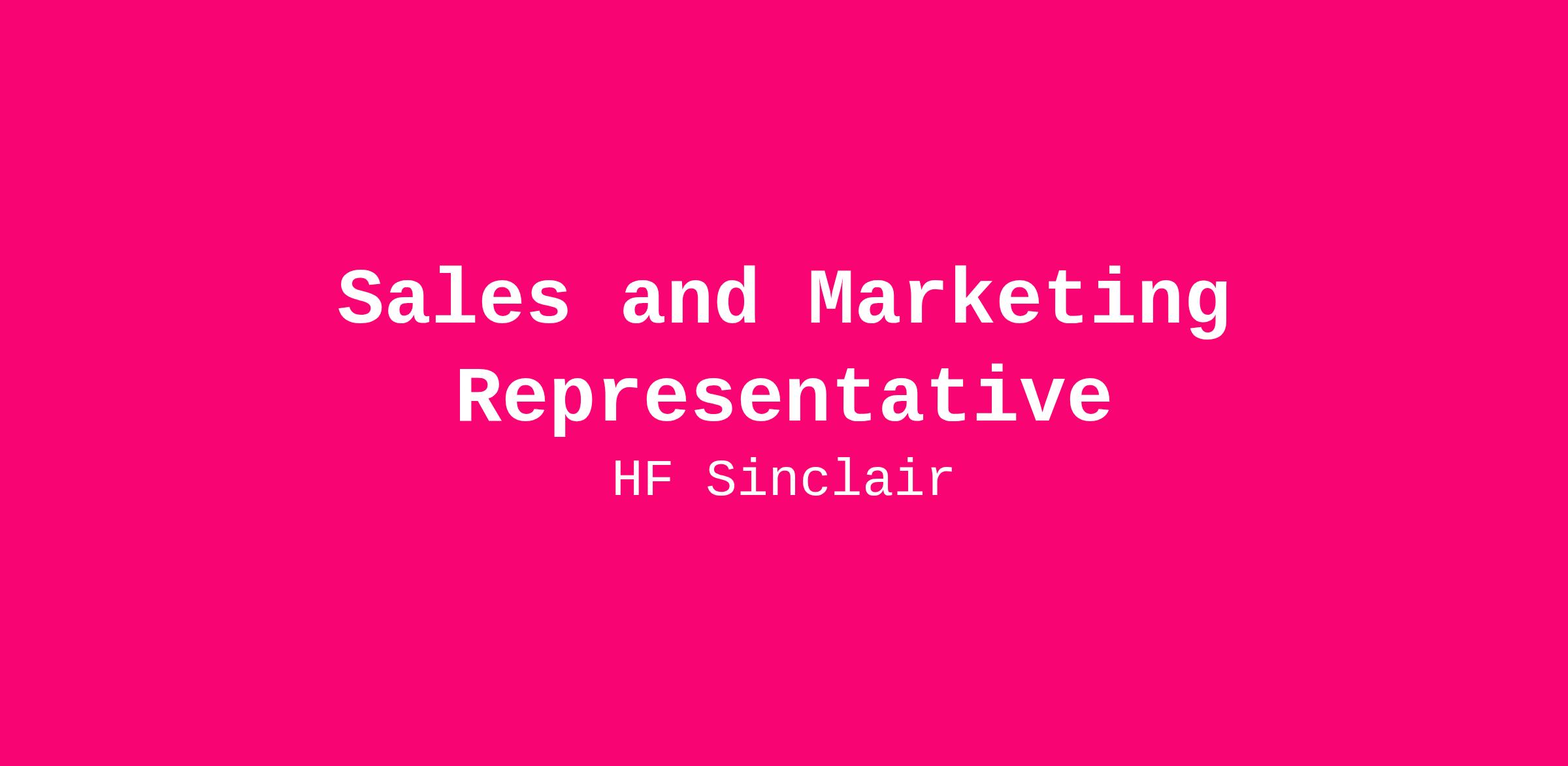 HF Sinclair is seeking a remote Sales and Marketing Representative based in Oregon or Washington State. In this role, you will conduct intermediate to high level, semi-complex marketing assignments for assigned petroleum products with limited supervision.