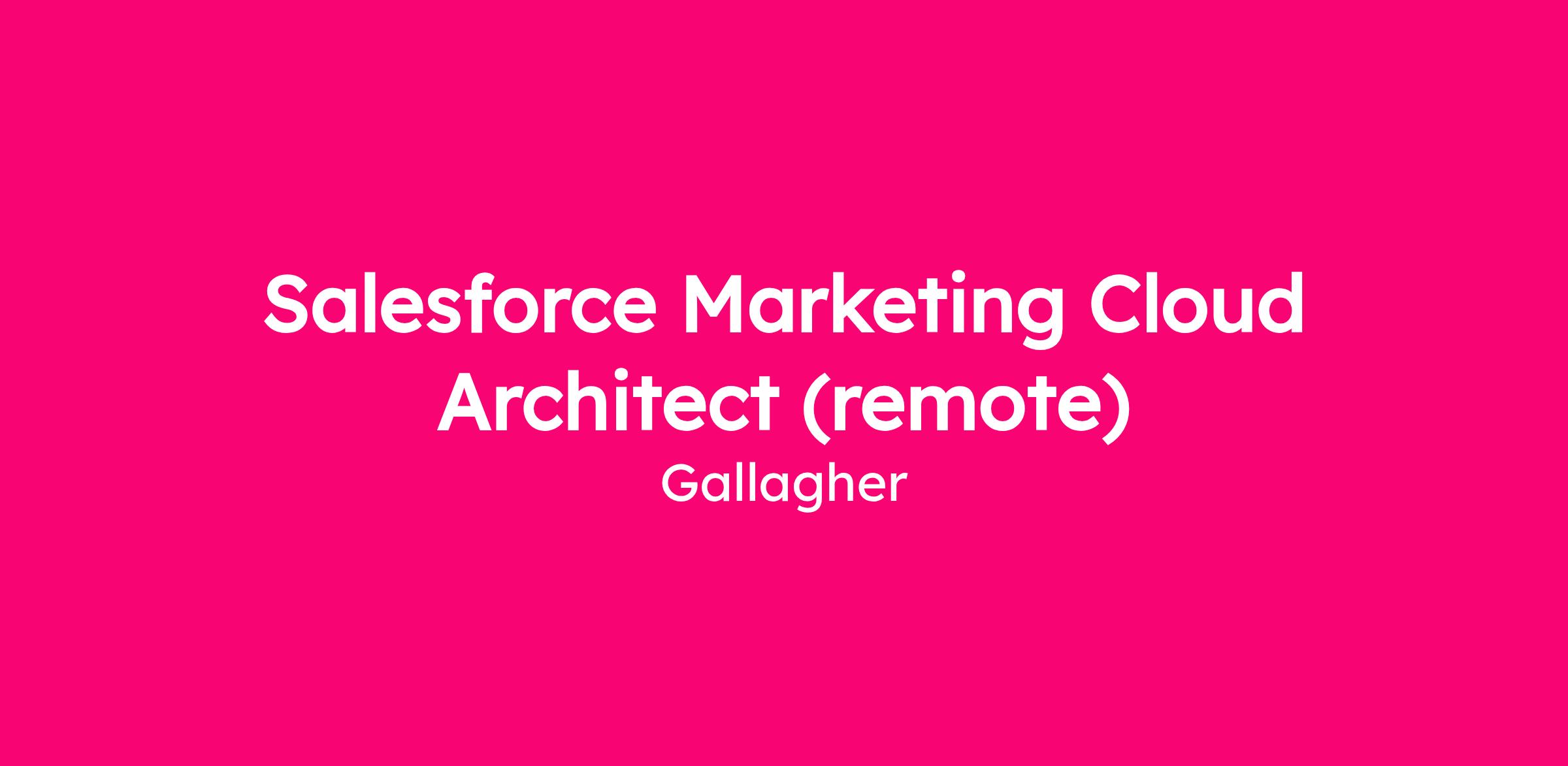 - Salesforce Certified Marketing Cloud Architect