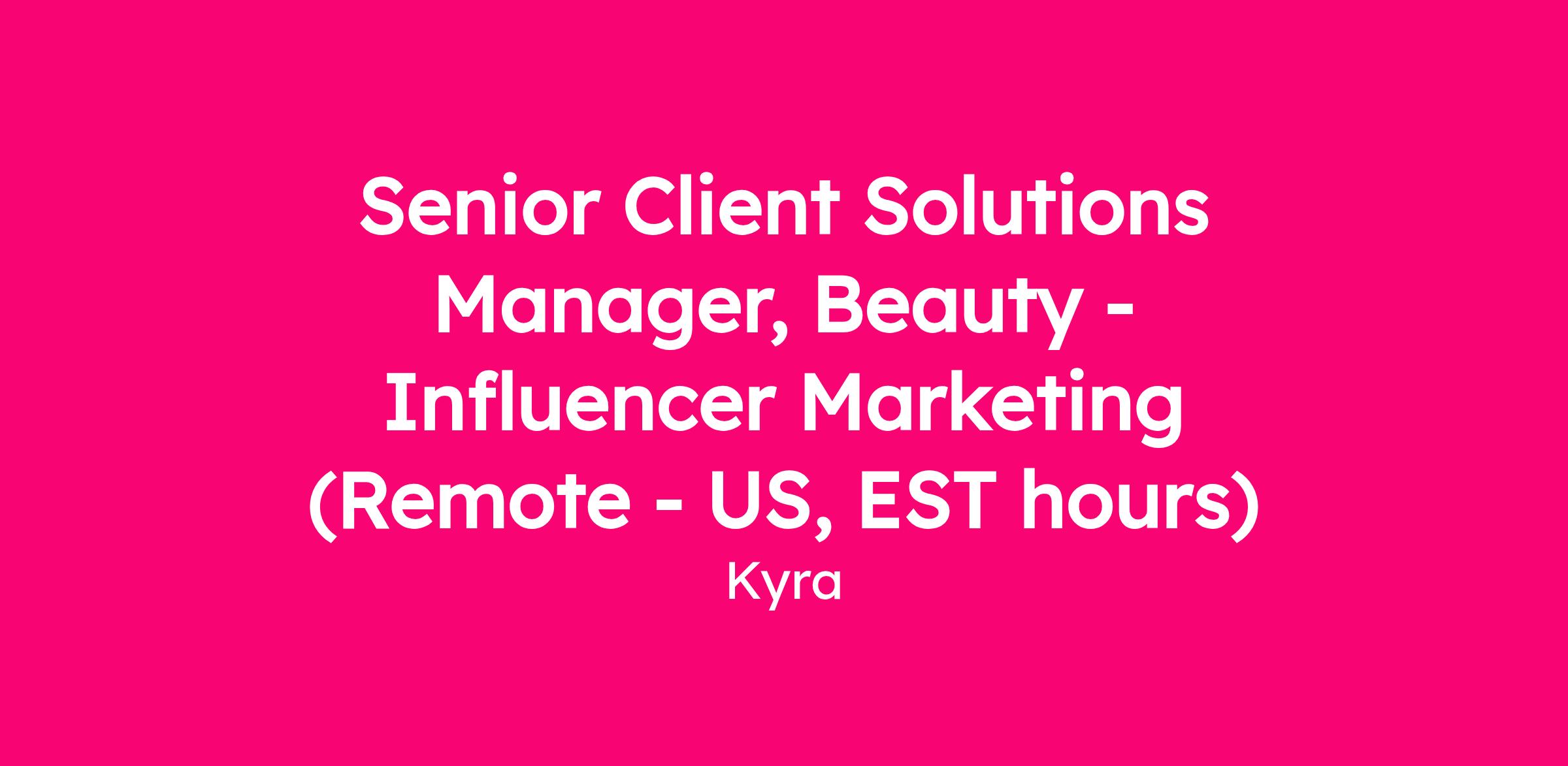 Reporting into the Head of Client Solutions, you'll be responsible for retaining and growing Kyra's beauty clients through the seamless delivery of high-performing creator activations, fostering strong client relationships, and identifying solutions that drive impact for brands navigating the creator beauty landscape.