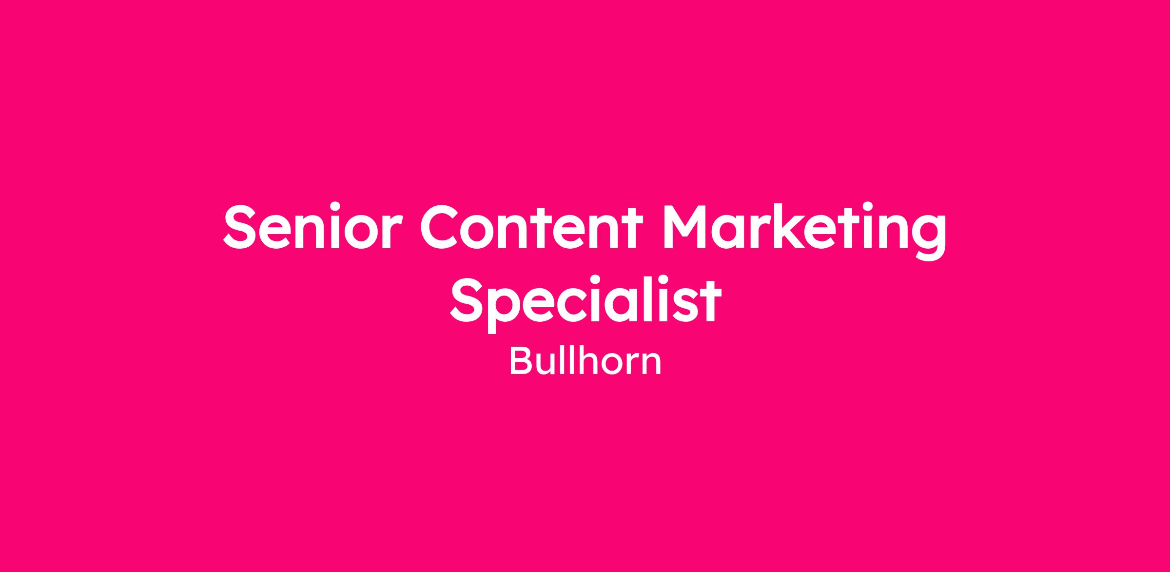 Reporting to our Director of PR and Communications, the Senior Content Marketing Specialist will own and help evolve Bullhorn’s content and social storytelling strategy, shaping how our brand shows up across digital channels, targeting prospects, customers, and Bullhorn’s internal audience.