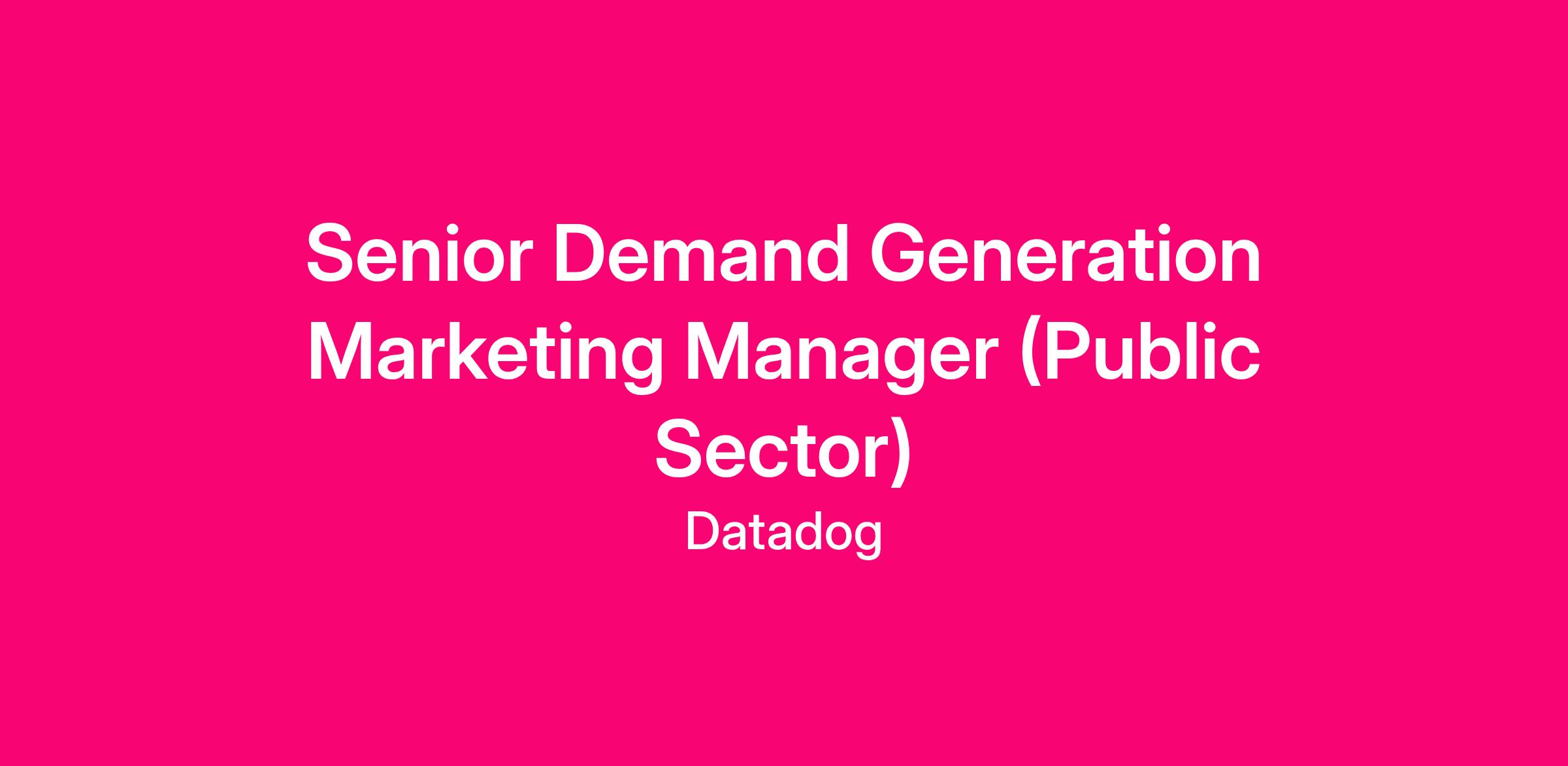 Datadog is looking for a strategic and results-oriented Senior Demand Generation Marketing Manager to lead full-funnel campaign execution for our Public Sector business. In this highly cross-functional role, you’ll partner closely with Product Marketing, Sales, and Field Marketing to drive pipeline across Federal (Civilian & DoD), State and Local Government, and Education (SLED) markets. You’ll own and scale the digital and demand engine for the Public Sector vertical, from high-touch ABM to broad digital programs. This is a unique opportunity to shape how Datadog reaches and engages government decision-makers in a highly regulated, high-impact space.