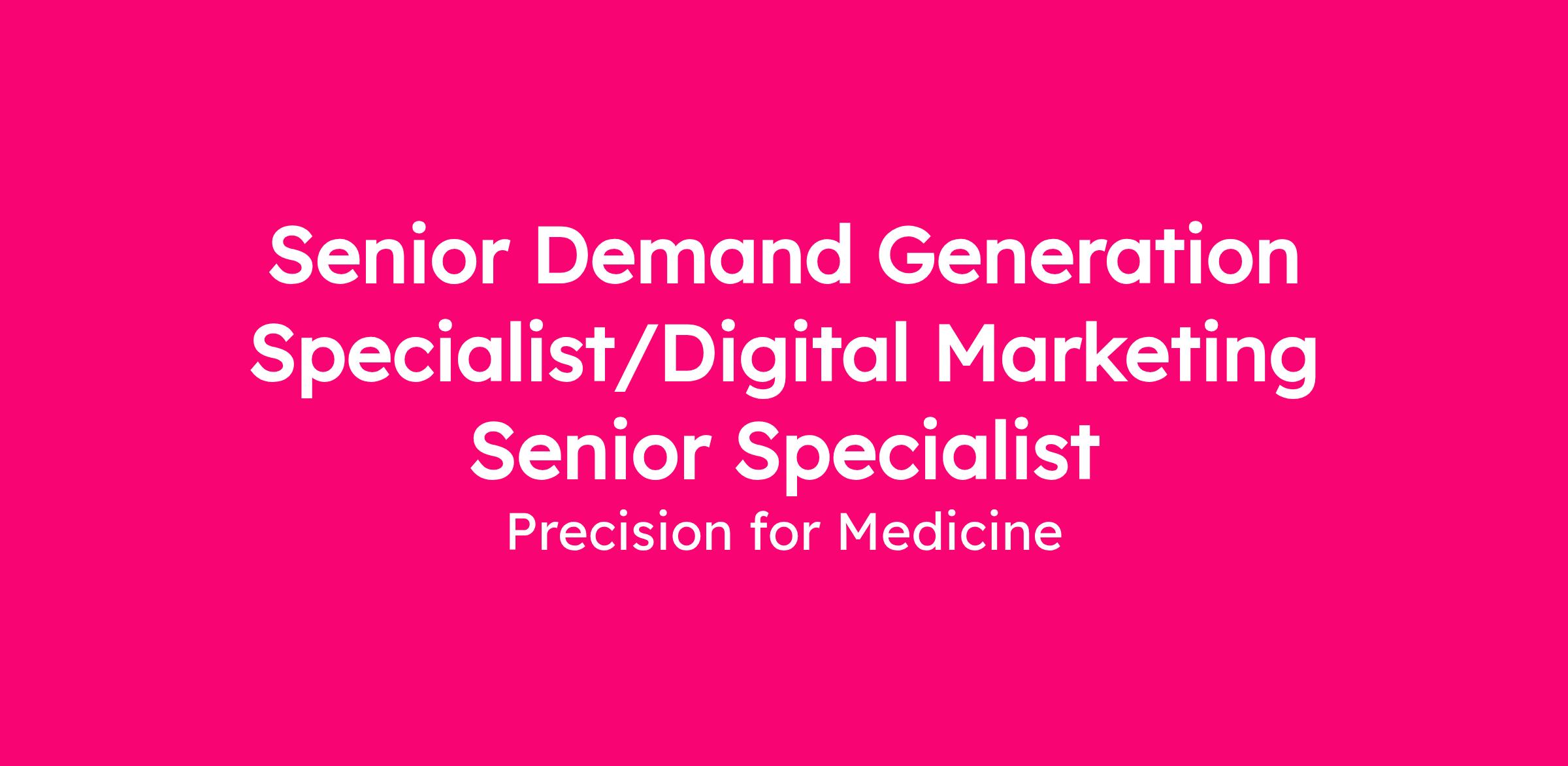 Precision for Medicine is hiring a Senior Demand Generation Specialist/Digital Marketing Senior Specialist to join our team. Candidates can work remotely in the UK, Hungary, Romania, Serbia or Slovakia.