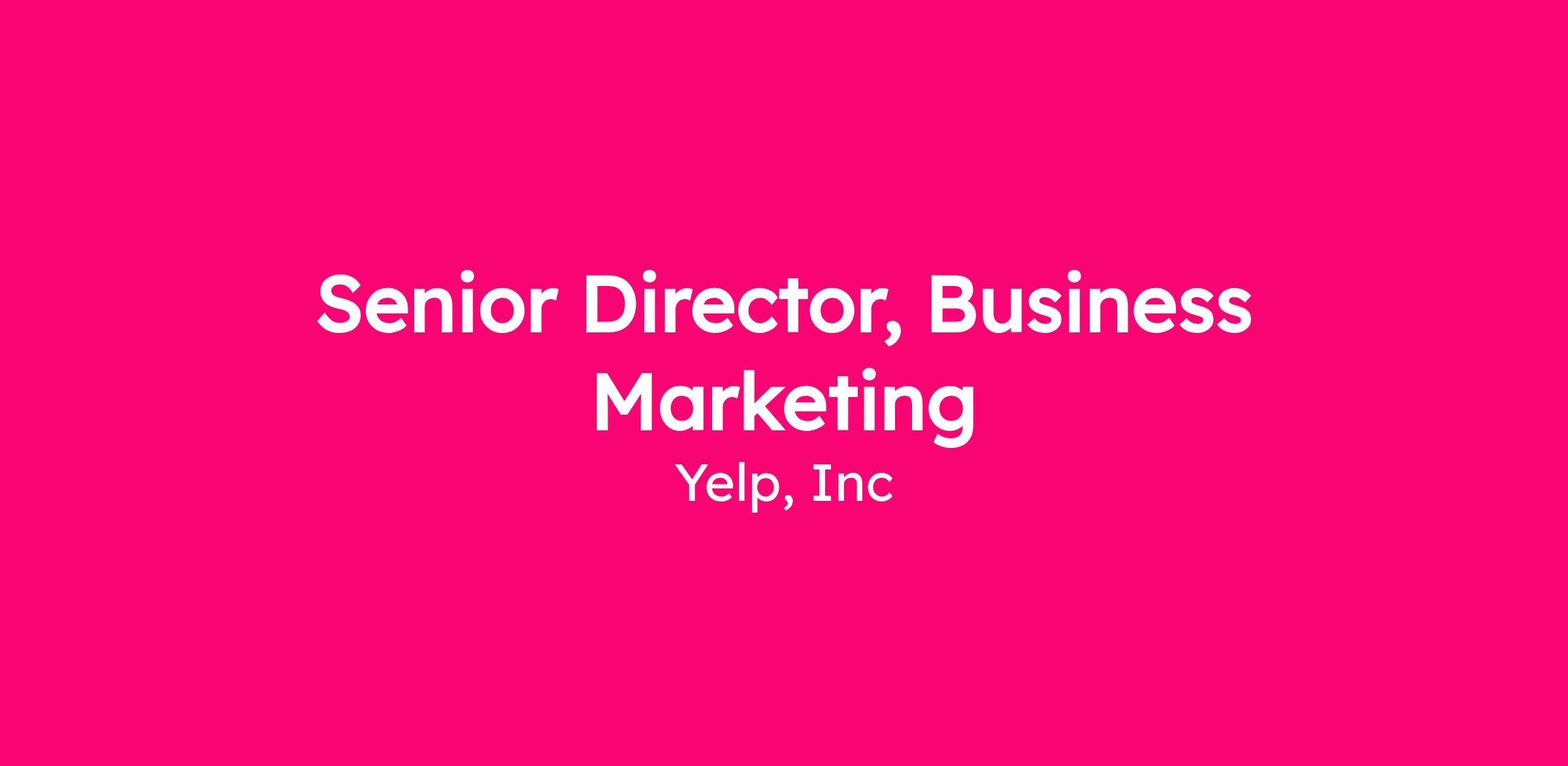 The Sr. Director, Business Marketing is responsible for building and executing Yelp’s Mid-Market, Enterprise, and Agency Partner growth marketing program. This includes hiring, developing, and coaching a high-performing team of marketers capable of working across multiple verticals, audience sizes, and supporting pipeline generation for media and advertising products. This person is an expert in building demand generation, growth marketing, and/or ABM programs that generate direct pipeline for sales teams using modern marketing tactics and technology. They’re customer-first, as comfortable with sales and product leadership as marketing, and have multiple examples where they’ve built teams, channels, budget, and measurement strategies that have directly produced new logo growth for Mid-Market and Enterprise audiences.