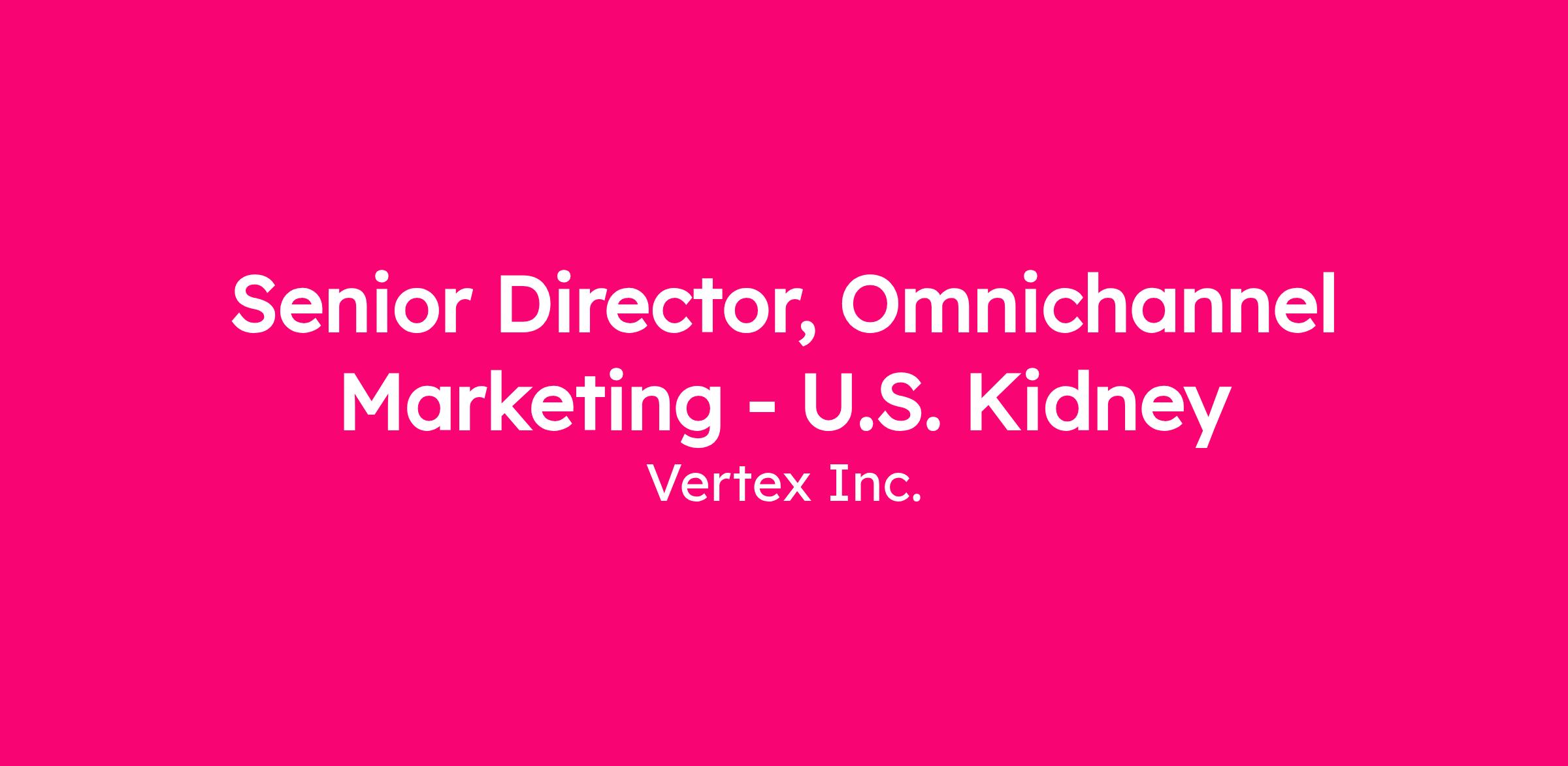 The Senior Director, Omnichannel Marketing - U.S. Kidney will lead the development and execution of omnichannel strategies to support the launch and growth of Vertex’s kidney portfolio. This role will shape the digital customer experience across HCP and patient audiences, leveraging data-driven insights to optimize engagement and impact.