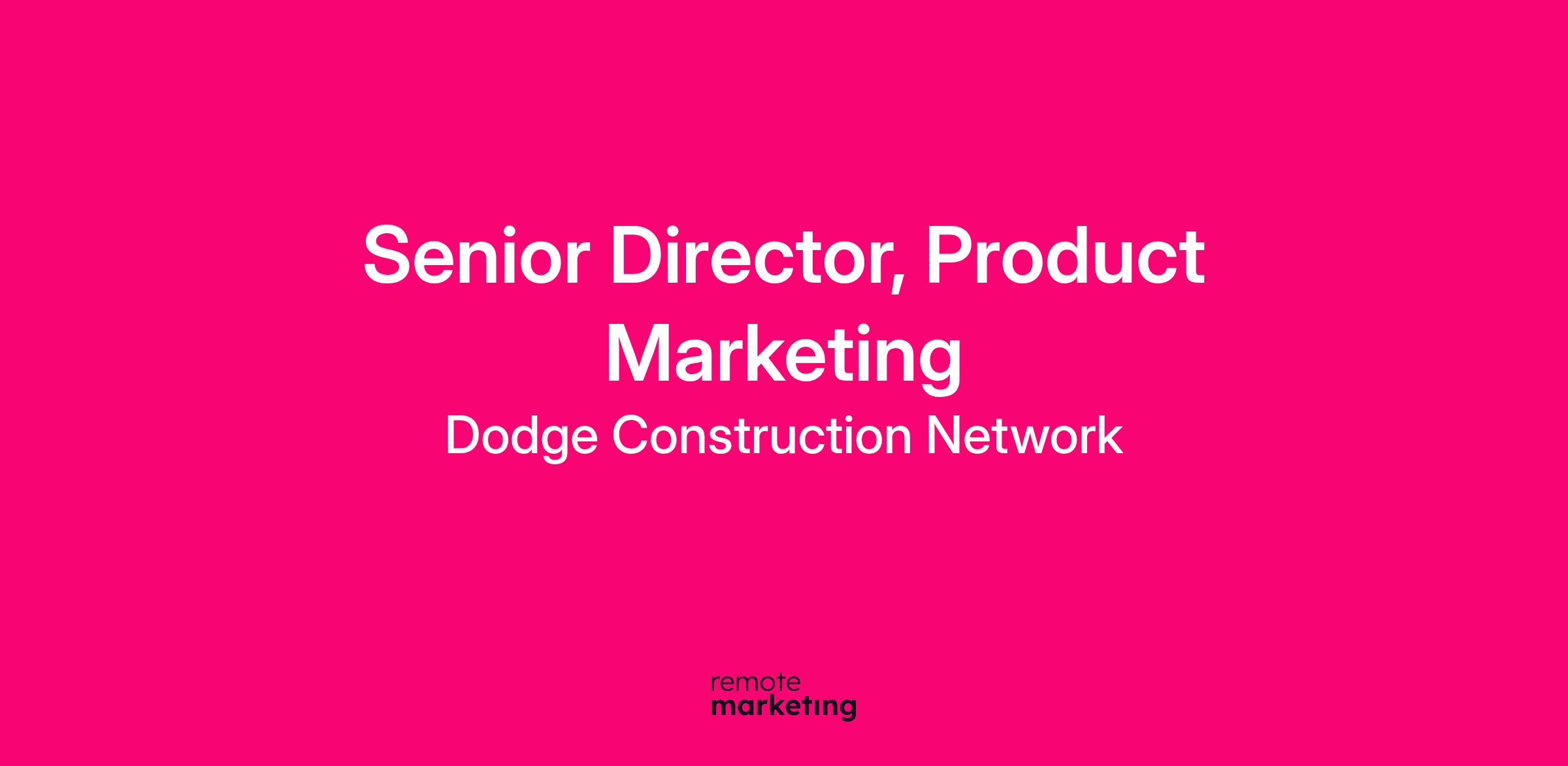 Dodge Construction Network (Dodge) is seeking an exceptional Senior Director, Product Marketing to define how Dodge's products are positioned, messaged, and experienced in the market. This leader will shape the stories that connect our products to the real-world success of our customers—driving conversion, retention, and advocacy across the buyer journey.