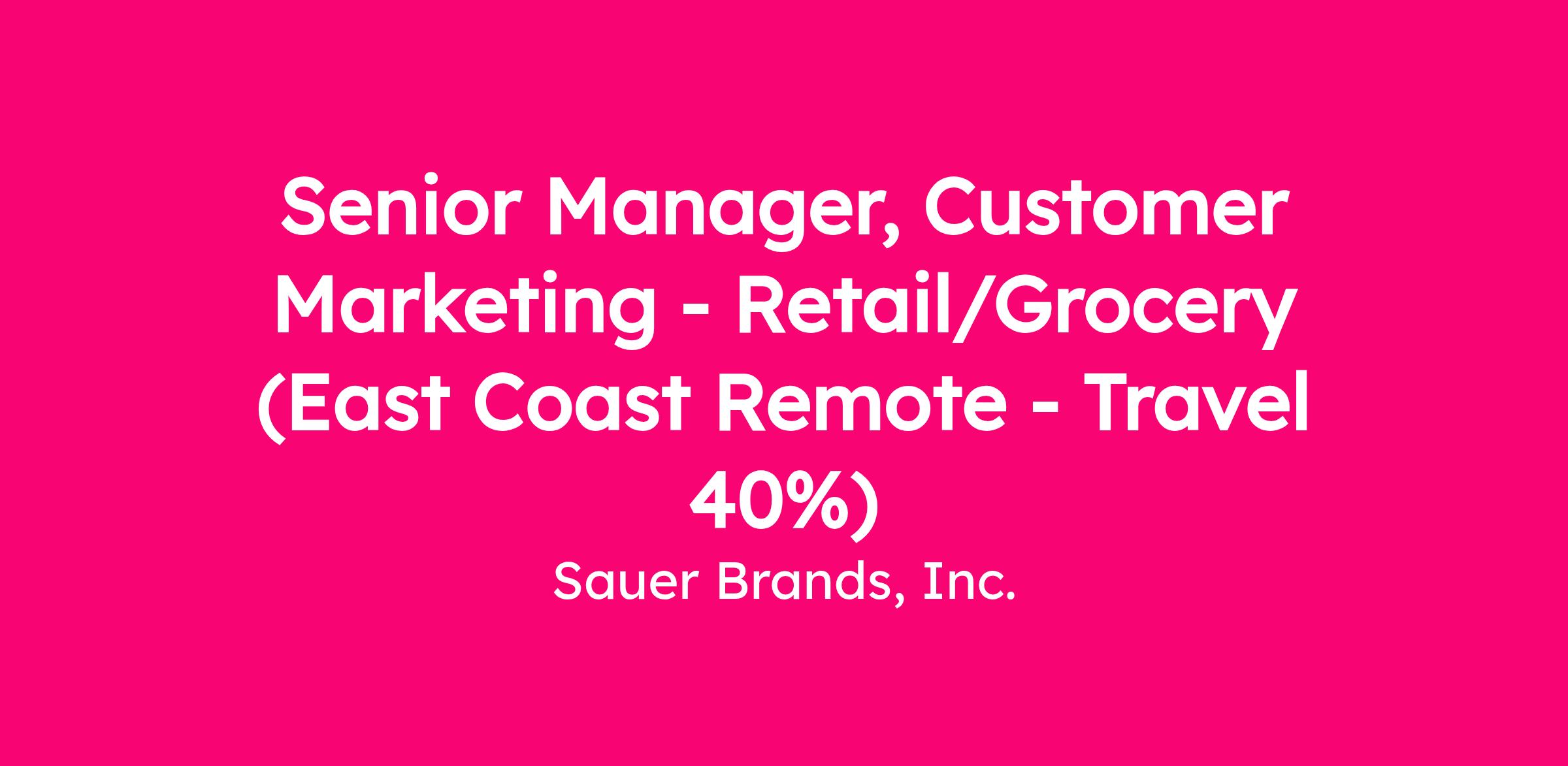 This role will lead the critical function of Customer Marketing for the Sauer Brand families (Duke's mayo, Mateo's salsa, Kernal Seasonings, The Spice Hunter) and serve as the primary voice of Sales on the Sauer Brands Management Team. This role will ensure Sauer Brands win at shelf and online through data-driven storytelling, compelling retail programs, and best-in-class execution. The Senior Manager will foster cross-functional collaboration and capability building across the Sales function. This position will report to the VP of Sales Strategy and will be in the Sales Strategy department.
