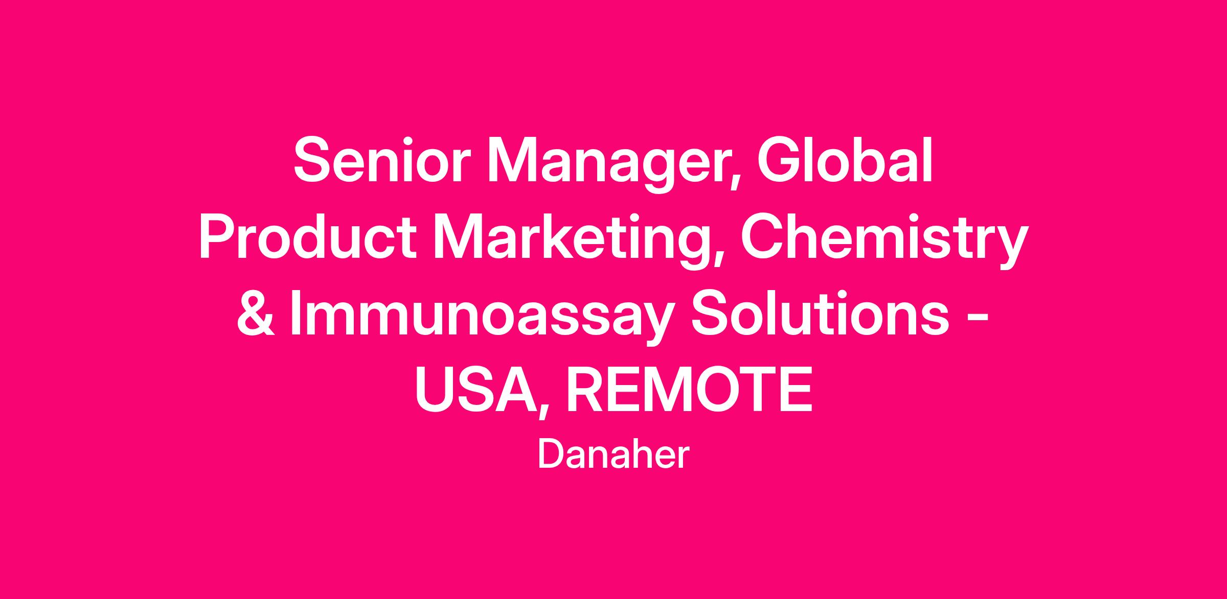The Senior Manager Global Product Marketing, Chemistry & Immunoassay Solutions is business critical role responsible for the global product commercialization strategy and post launch campaign development and execution for our chemistry and immunoassay product lines. At Beckman Coulter, our vision is to relentlessly reimagine healthcare, one diagnosis at a time.