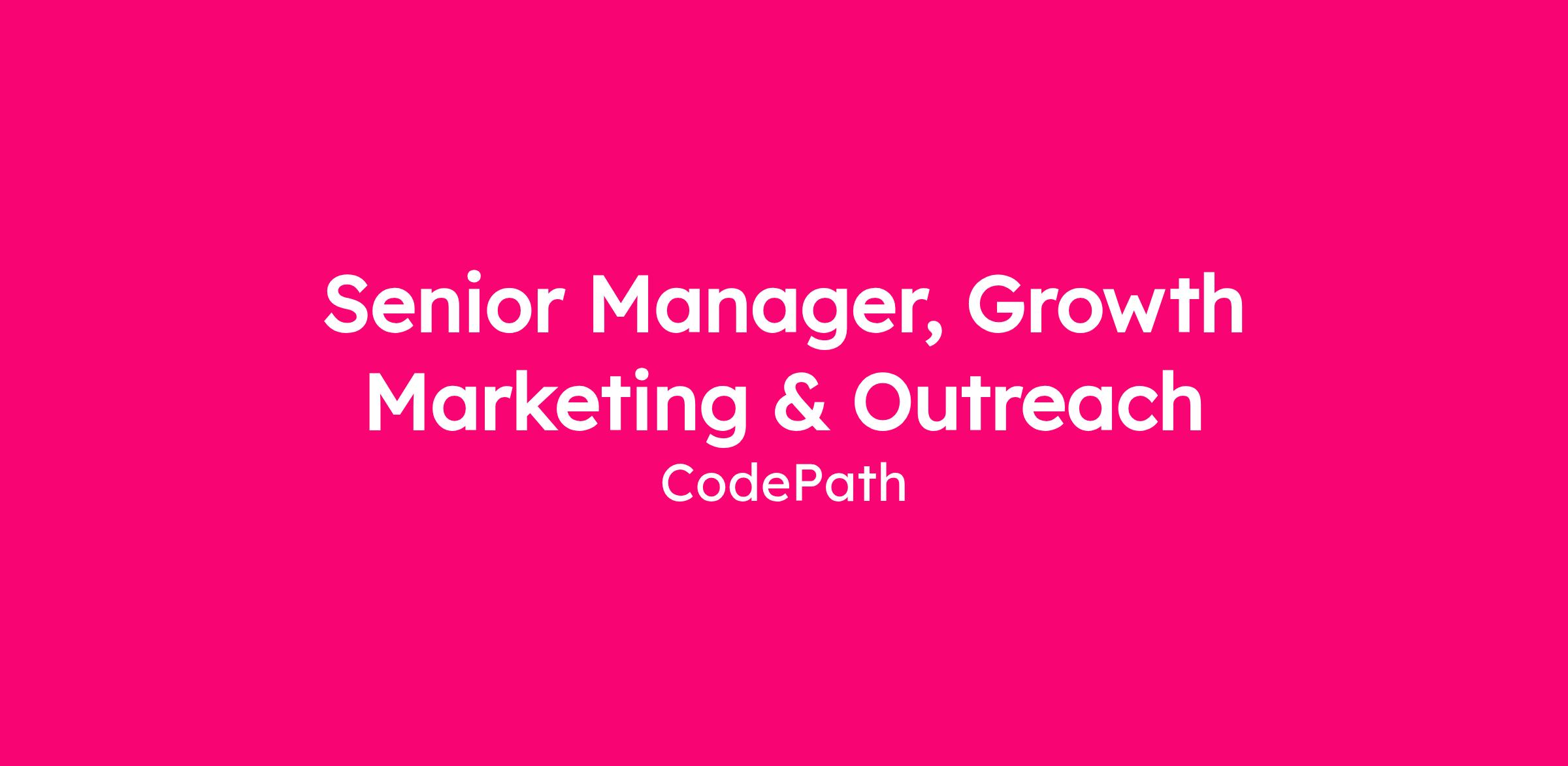 The Senior Manager of Growth Marketing & Outreach leads the execution for CodePath’s outreach and campaign operations. You’ll own the full digital outreach program, promoting our courses and driving enrollment through student groups, faculty champions, career services and more. You will optimize HubSpot sequences, email and SMS lifecycle campaigns, virtual info sessions, and re-enrollment outreach, driving both top of funnel enrollment and student re-engagement.