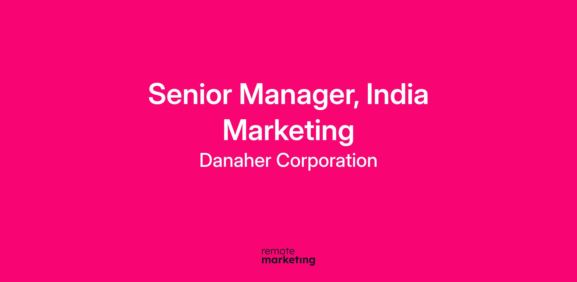 This position reports to the Director, Regional Marketing, APAC and is part of the Commercial Marketing Organization located in Bangalore/Mumbai/Pune/Hyderabad/Mumbai/Ahmedabad/Gurgaon and will be working remotely to cover the India region. At Cytiva, our vision is, to advance future therapeutics from discovery to delivery.