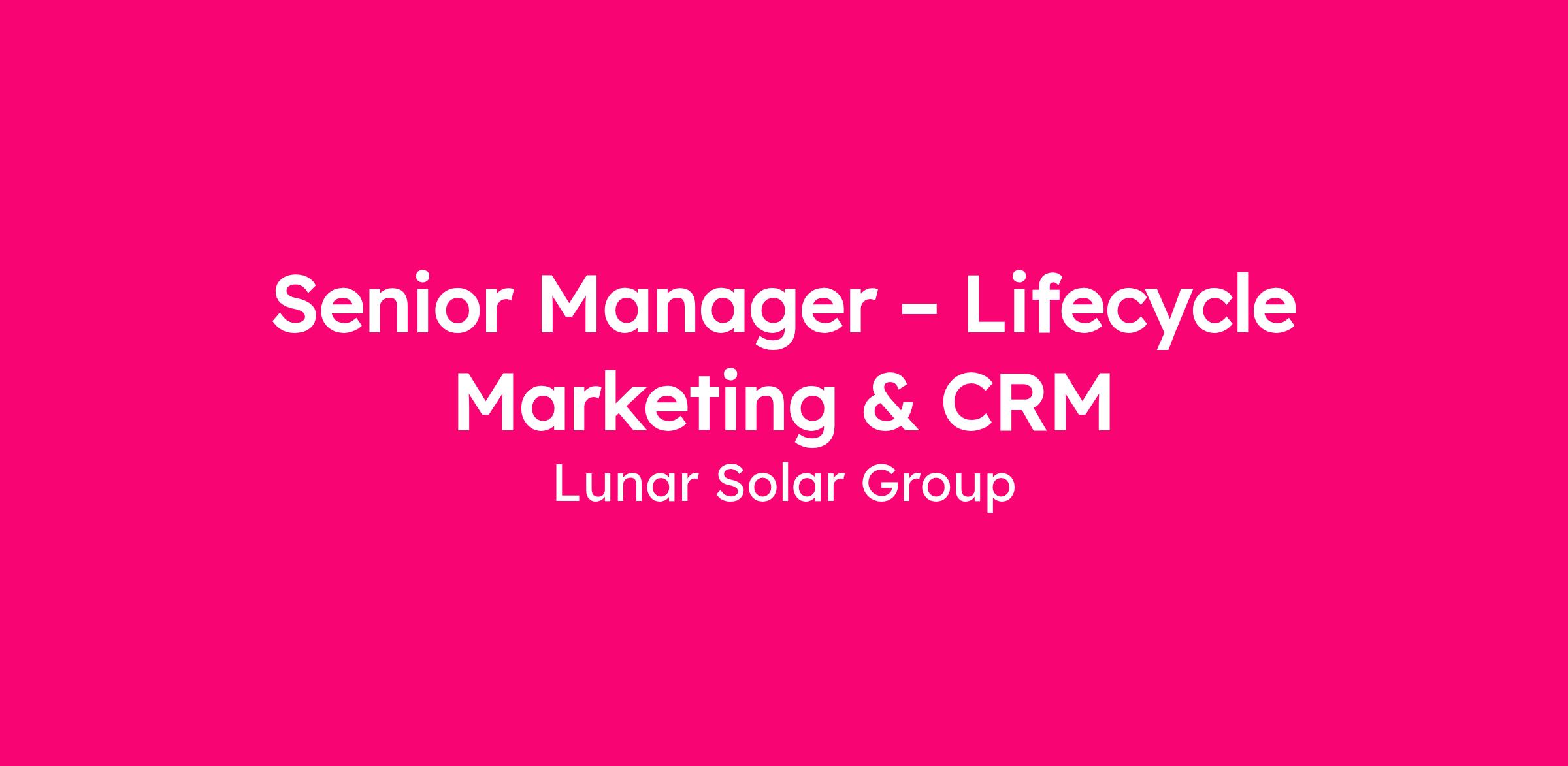 Lunar Solar Group is seeking a Senior Manager – Lifecycle Marketing & CRM to lead lifecycle strategy across a portfolio of fast-growing DTC brands. Reporting to the Director of CRM, you will manage key client relationships and own high-level acquisition and retention strategy spanning email, SMS, loyalty, referral, and subscription programs.