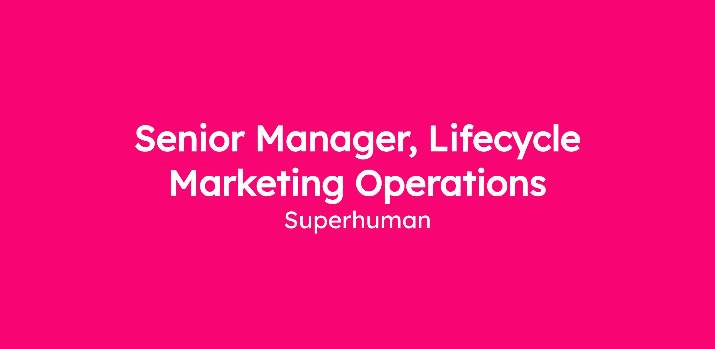 As Senior Manager, Lifecycle Marketing Operations, you will serve as a senior individual contributor responsible for driving operational excellence across Superhuman’s lifecycle marketing engine, with a strong focus on both Lifecycle Marketing and our Managed Business.