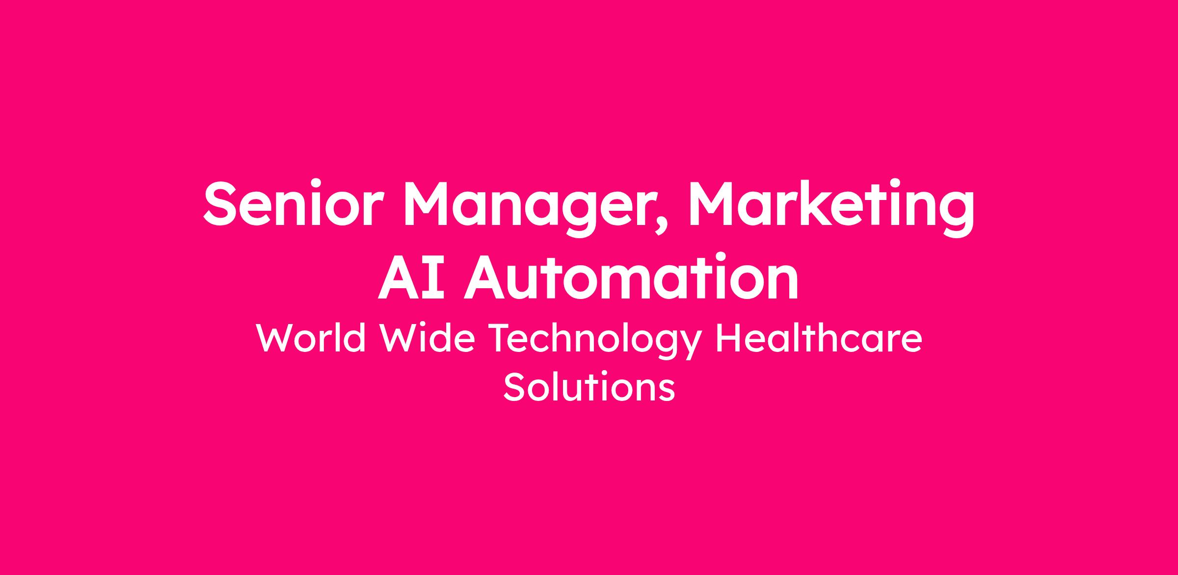 As a Senior Manager – Marketing Automation & AI Engineering, you will own the technical strategy and execution of WWT’s marketing automation and AI capabilities. This role is responsible for designing and building the platforms that power internet and email campaign automation, AI driven‑ content systems, and the next generation of marketing technology at WWT.