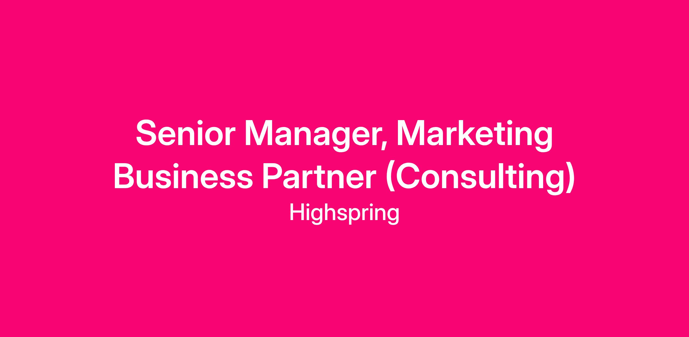 The Senior Manager, Marketing Business Partner – Consulting reports to the Director, Marketing Business Partner – Business Unit Marketing & Solutions and is responsible for Business Unit stakeholder management, consulting marketing strategy, enablement, and socializing marketing reporting across Highspring’s Consulting business.