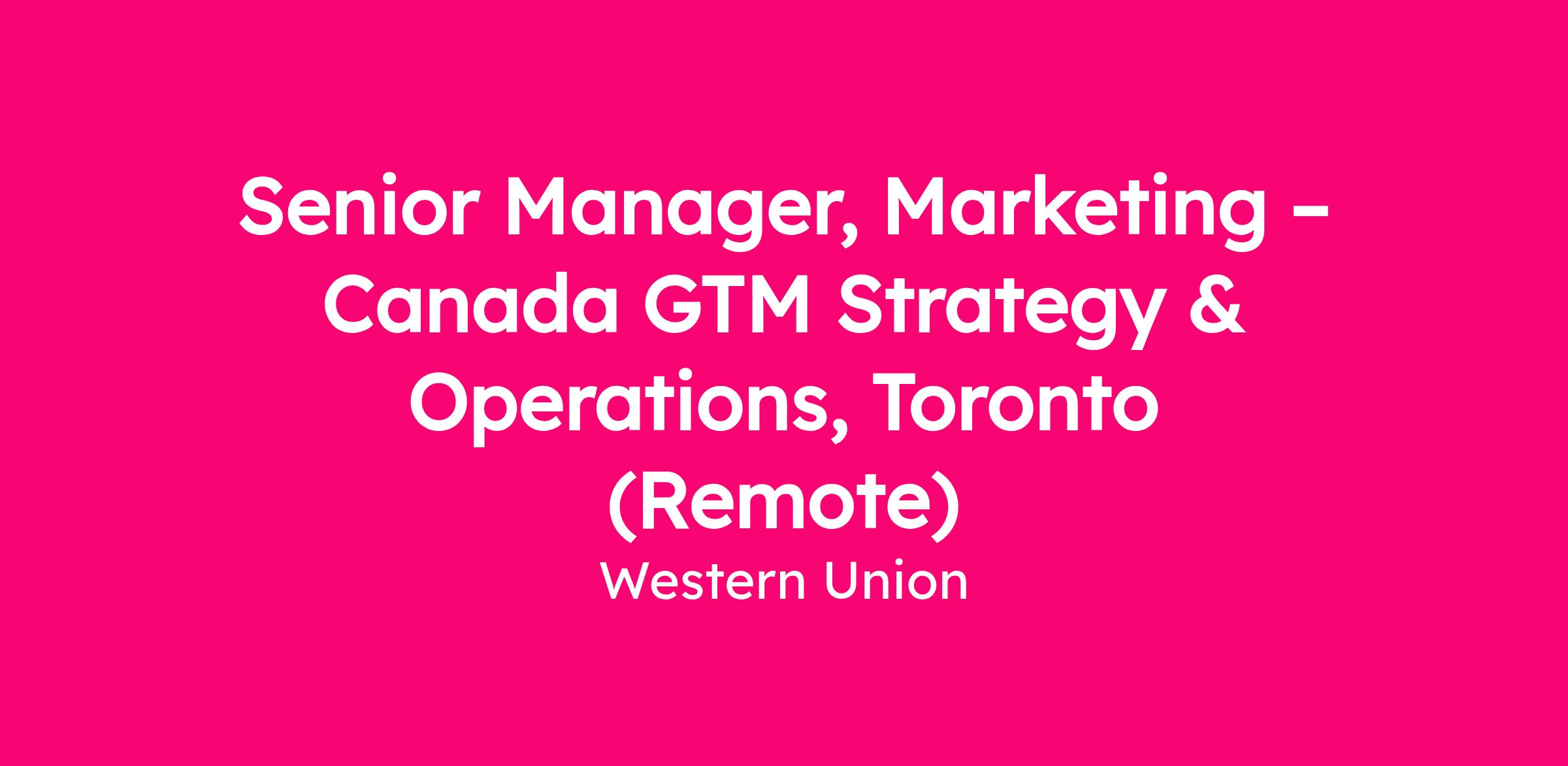 Senior Manager, Marketing – Canada GTM Strategy & Operations, Toronto (Remote)