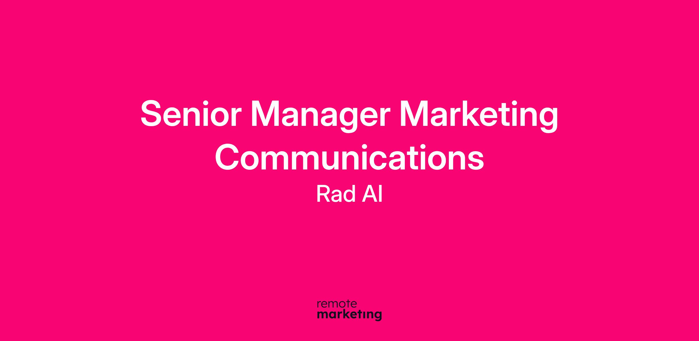 Rad AI is looking for a Senior Manager of Marketing Communications who thrives in a fast-paced world. We seek someone who can think strategically, execute fearlessly and produce exceptional content at a high volume.