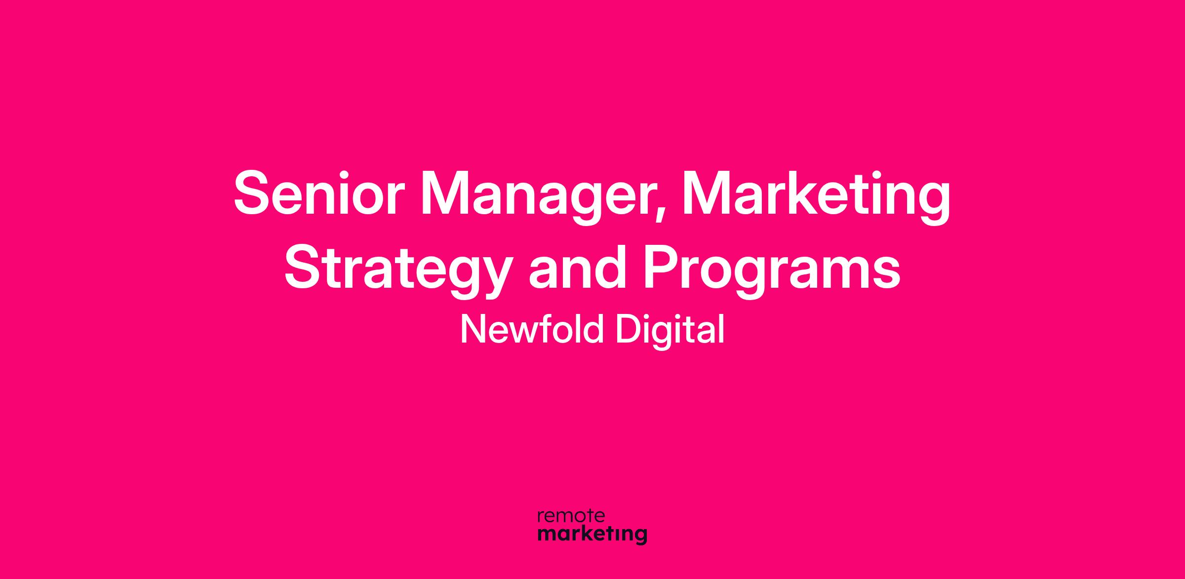 The Role: We are seeking a seasoned Senior Manager, Marketing Strategy and Programs to develop cross-marketing strategy, integrated execution framework, and measurement of marketing programs to drive net-new growth and expansion.