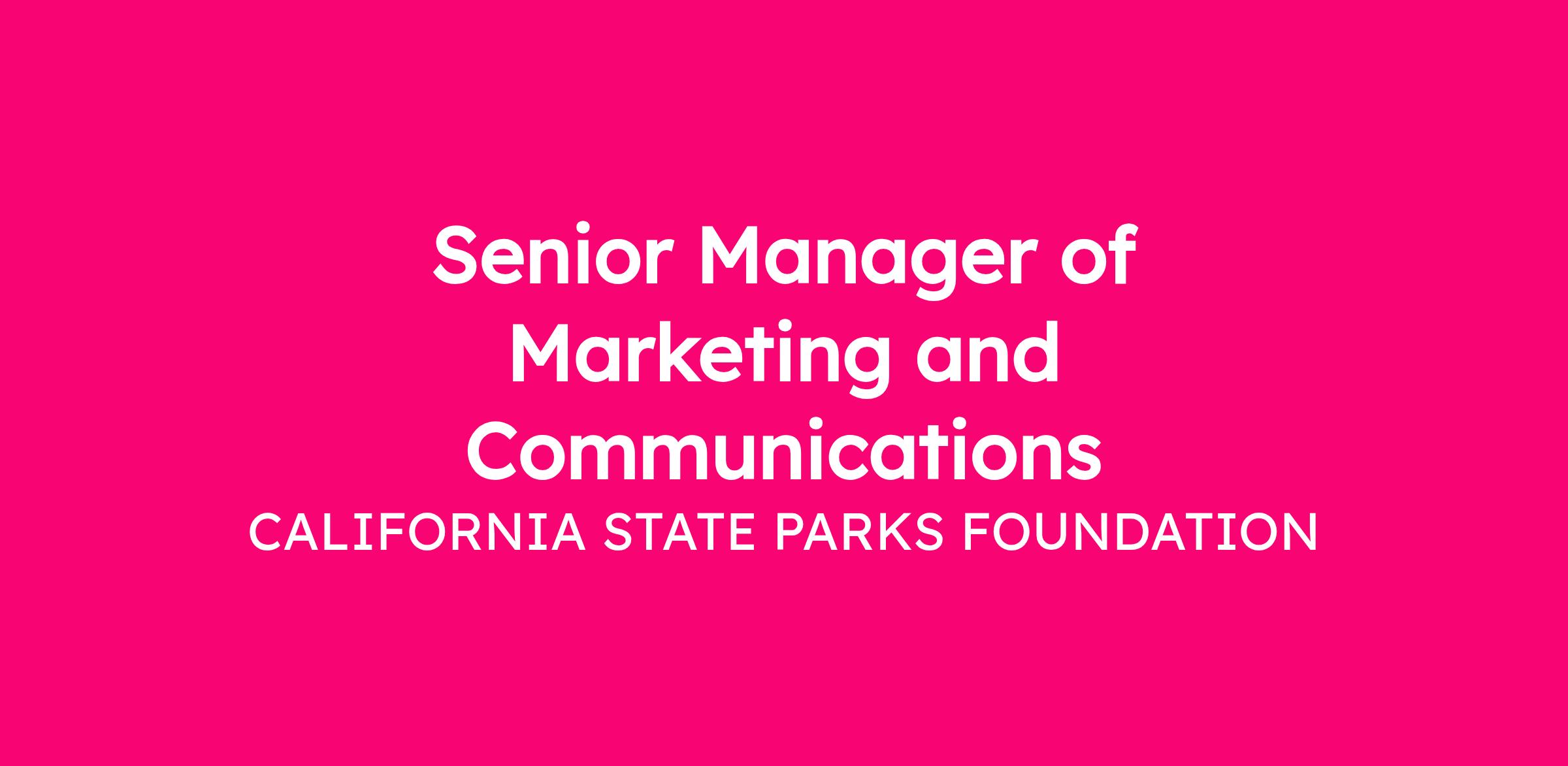 California State Parks Foundation (CSPF) seeks an experienced and strategic Senior Manager of Marketing and Communications to manage, support, and implement the organization’s marketing and communications efforts. Reporting to the Director of Marketing and Communications, this role manages integrated marketing and communications strategies that build awareness, engagement, and long-term support for California’s state parks.