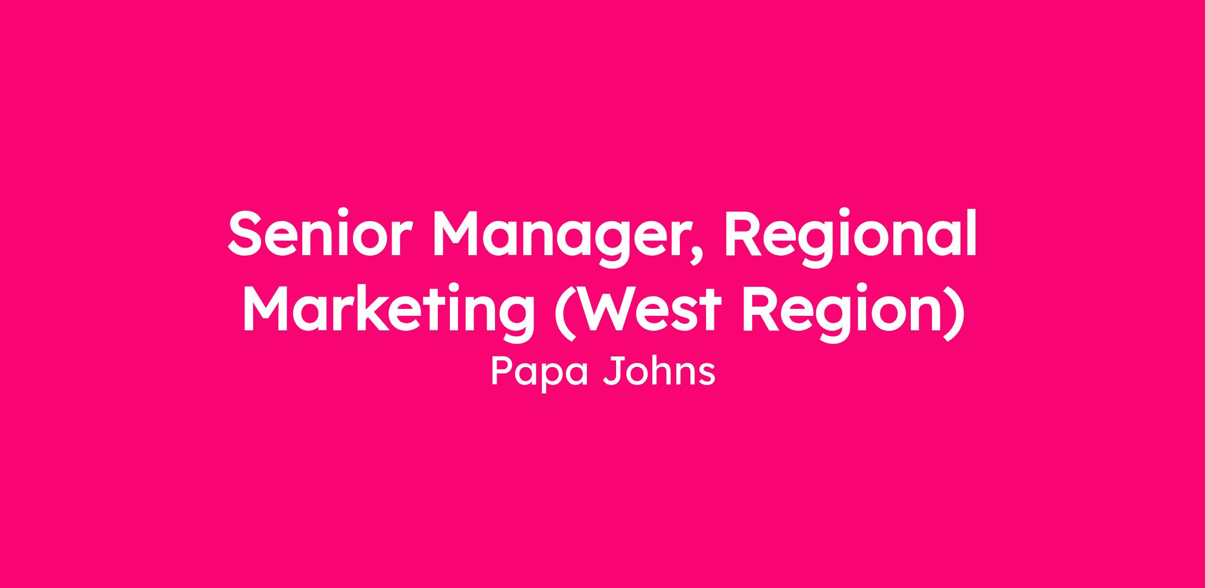 The Senior Manager, Regional Marketing is responsible for providing leadership, driving top-line performance, and brand consideration at the local level by leveraging Papa Johns national campaigns, promotions, and marketing strategies. The role is responsible for measuring the market impact for local campaigns and the impact on key business objectives. The role helps to execute the broader marketing strategy at the local level, working with agencies and operators to drive brand engagement. This role is responsible for driving marketing strategies at the local level in alignment with the broader business strategy and performance targets.