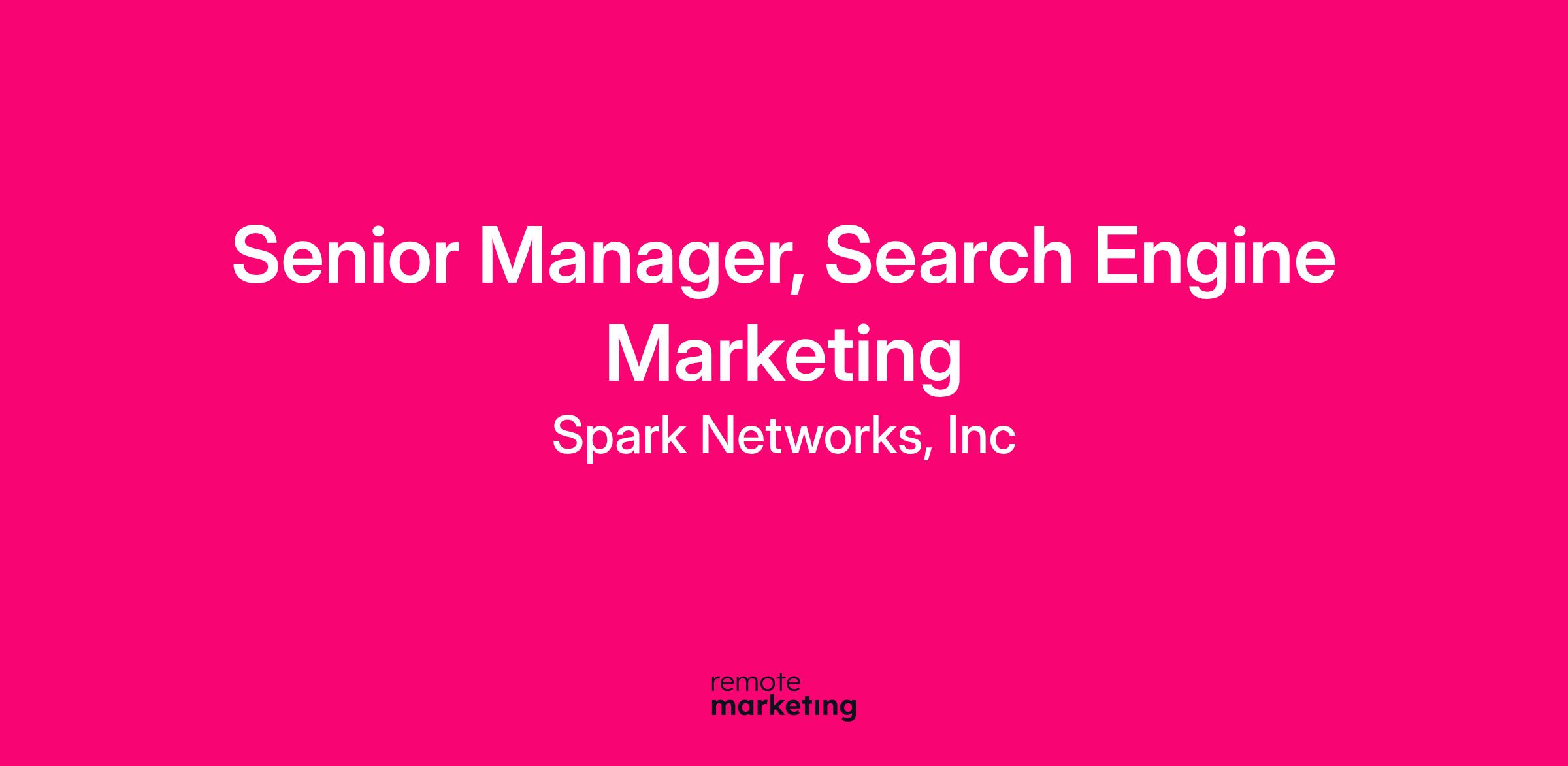 At Spark Networks, we’re building platforms that bring people together - and we believe the same energy applies to our team. Right now, we’re looking for an experienced Senior Manager of Search Engine Marketing (SEM) who will be responsible for leading and managing our SEM initiatives, driving paid traffic growth and enhancing the overall digital presence of Spark. This role involves developing and implementing effective SEM strategies, managing Google, Bing and Apple accounts, and working cross-functionally with various teams to ensure the successful execution of SEM plans. The ideal candidate will have extensive experience in SEM, strong analytical skills, and the ability to work in a fast-paced, dynamic environment.