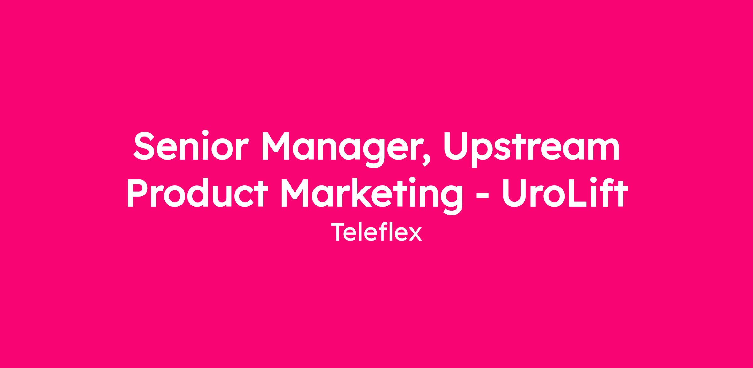 The Sr. Manager, Upstream Product Marketing - Urolift is a key member of the Marketing team supporting the Teleflex Interventional Urology Business Unit (IUBU). This role is responsible for leading upstream product strategy by bringing the voice of the physician and patient into product planning and development. The Upstream Sr. Product Manager identifies market opportunities and unmet needs, partners cross-functionally to define differentiated products and clinical solutions, and works closely with Downstream Product Marketing to enable successful commercialization.