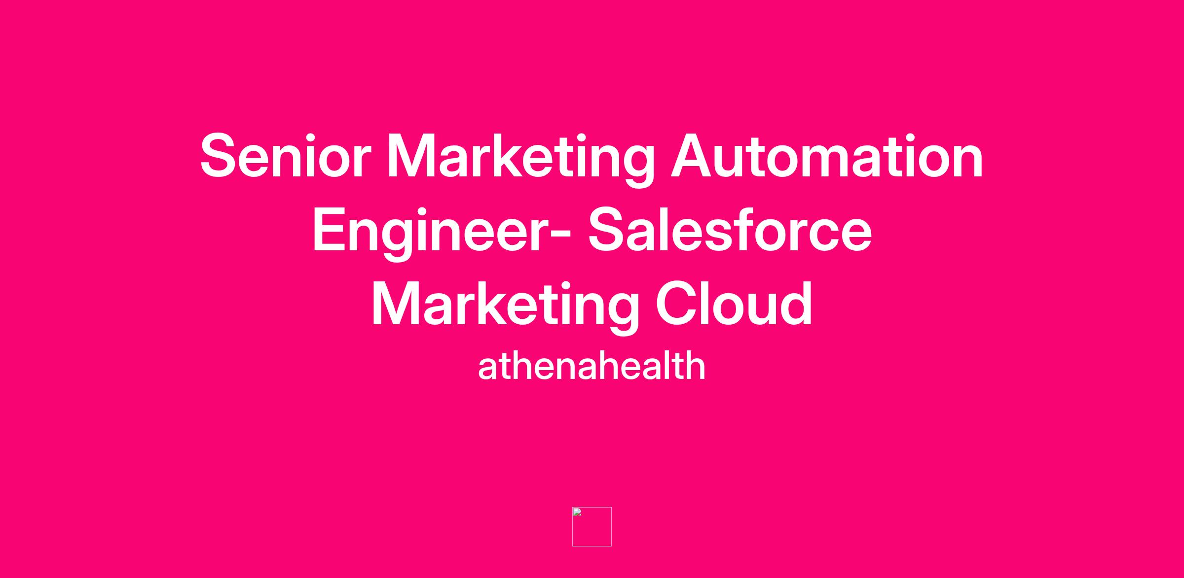Position Overview: As a Senior Marketing Automation Engineer, on the athenaIT team at athenahealth, you will play a pivotal role in enabling advanced marketing capabilities across are marketing technology stack, including Salesforce Marketing Cloud Engagement (SFMCE) and Salesforce Data Cloud. This role requires deep technical expertise, strategic influence, and the ability to bridge the gap between marketing strategy and technology capabilities. You will design and implement scalable, data-driven marketing solutions, mentor team members, and ensure alignment between marketing strategies and enterprise technology standards.
