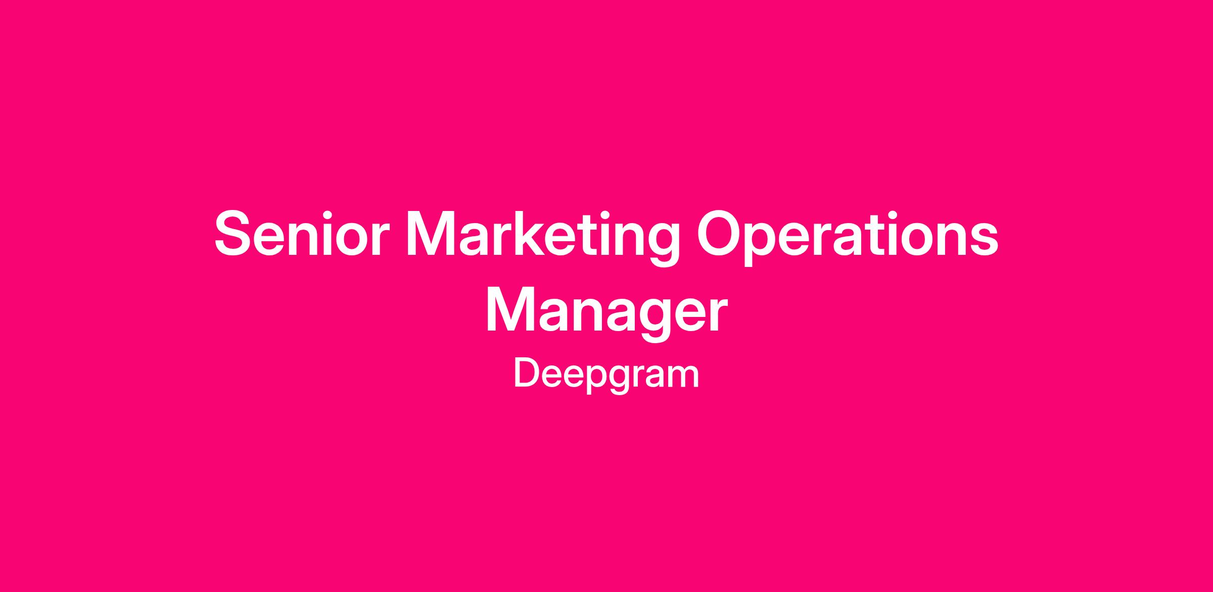 As Deepgram’s Senior Marketing Operations Manager, you’ll be the connective tissue between our marketing technology, data, and strategy. Reporting to the Director of Marketing Operations, you’ll manage our marketing tech stack, own several key vendor relationships, and serve as a strategic and hands-on partner to our Marketing, Sales, and Product teams.