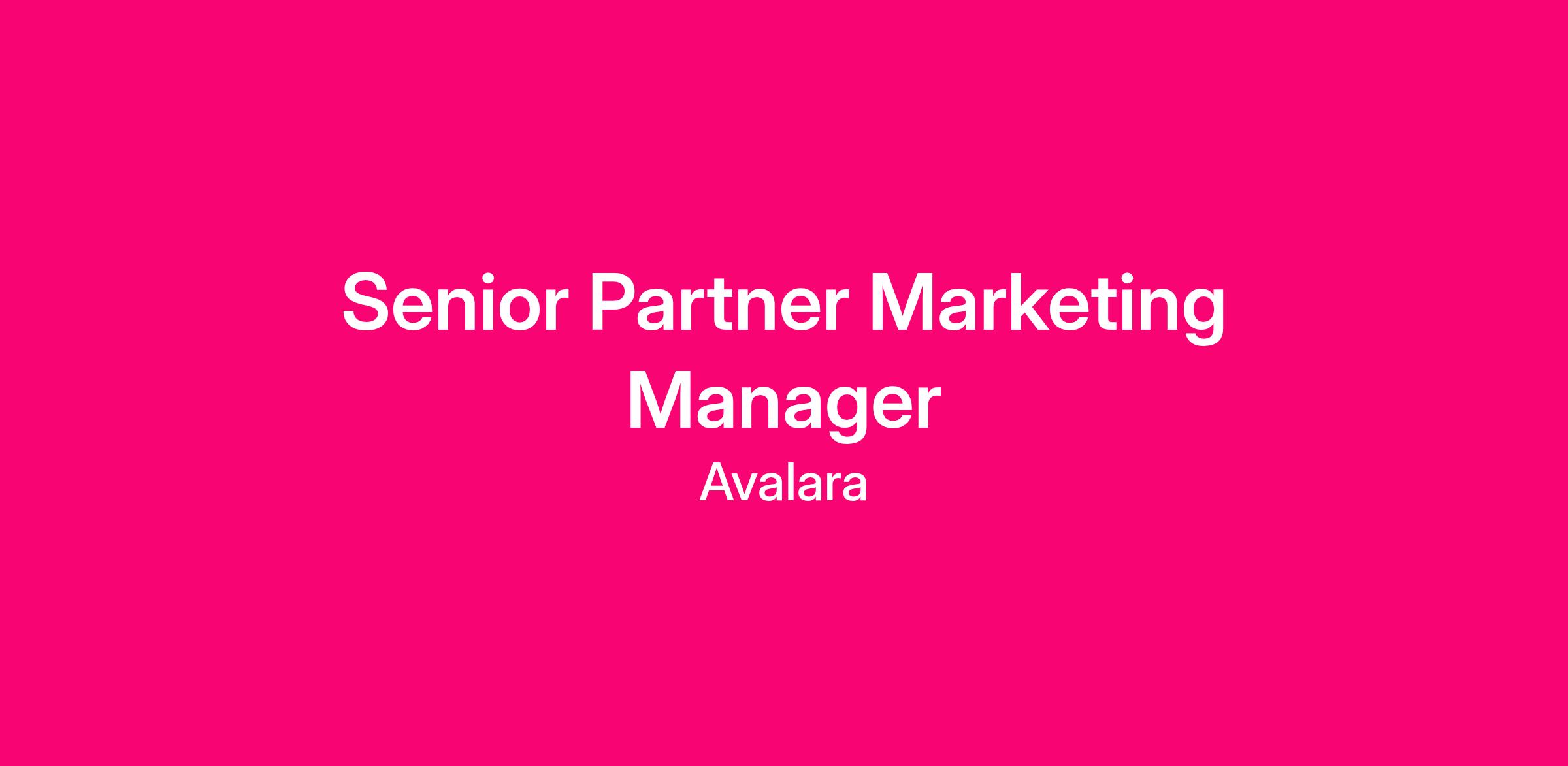 Avalara is looking for a Senior Partner Marketing Manager to lead the marketing strategy of integrated campaigns and always-on programs that drive pipeline and revenue growth with our Enterprise partners. Reporting to the Senior Director of Partner Marketing, you'll collaborate across teams to build go-to-market programs that accelerate joint growth and expand our impact in the market.