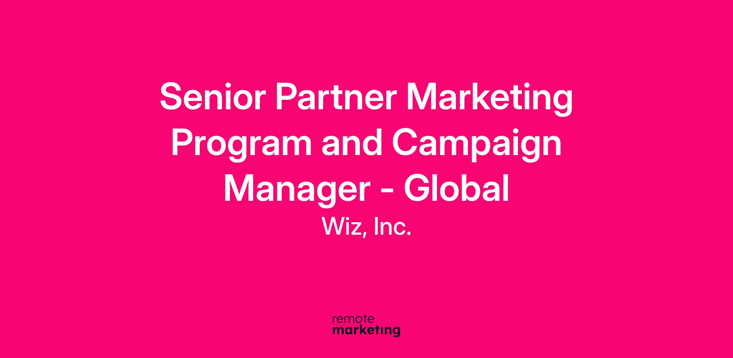 As the Senior Partner Marketing Program and Campaign Manager, you will be responsible for developing and supporting the execution of strategic marketing programs including communications and campaigns for our partners. You will play a crucial role in driving joint marketing initiatives to promote Wiz products/services through partner channels. This role requires a blend of creativity, strategic thinking, and strong communication skills to build successful partnerships and deliver impactful marketing programs.