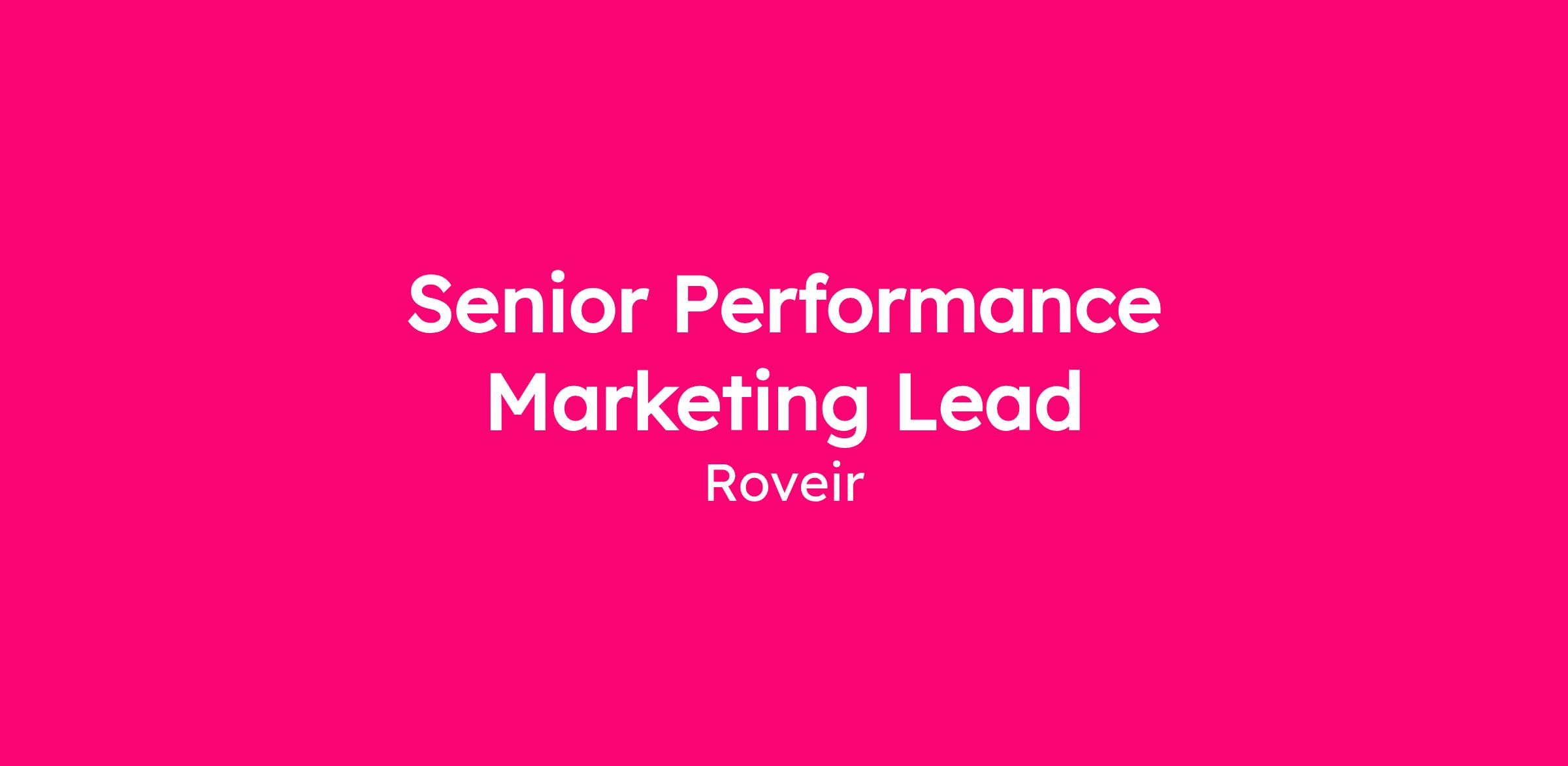 We're hiring a Senior Performance Marketing Lead to own paid acquisition strategy and execution across a portfolio of Roveir and Roveia Health client accounts.